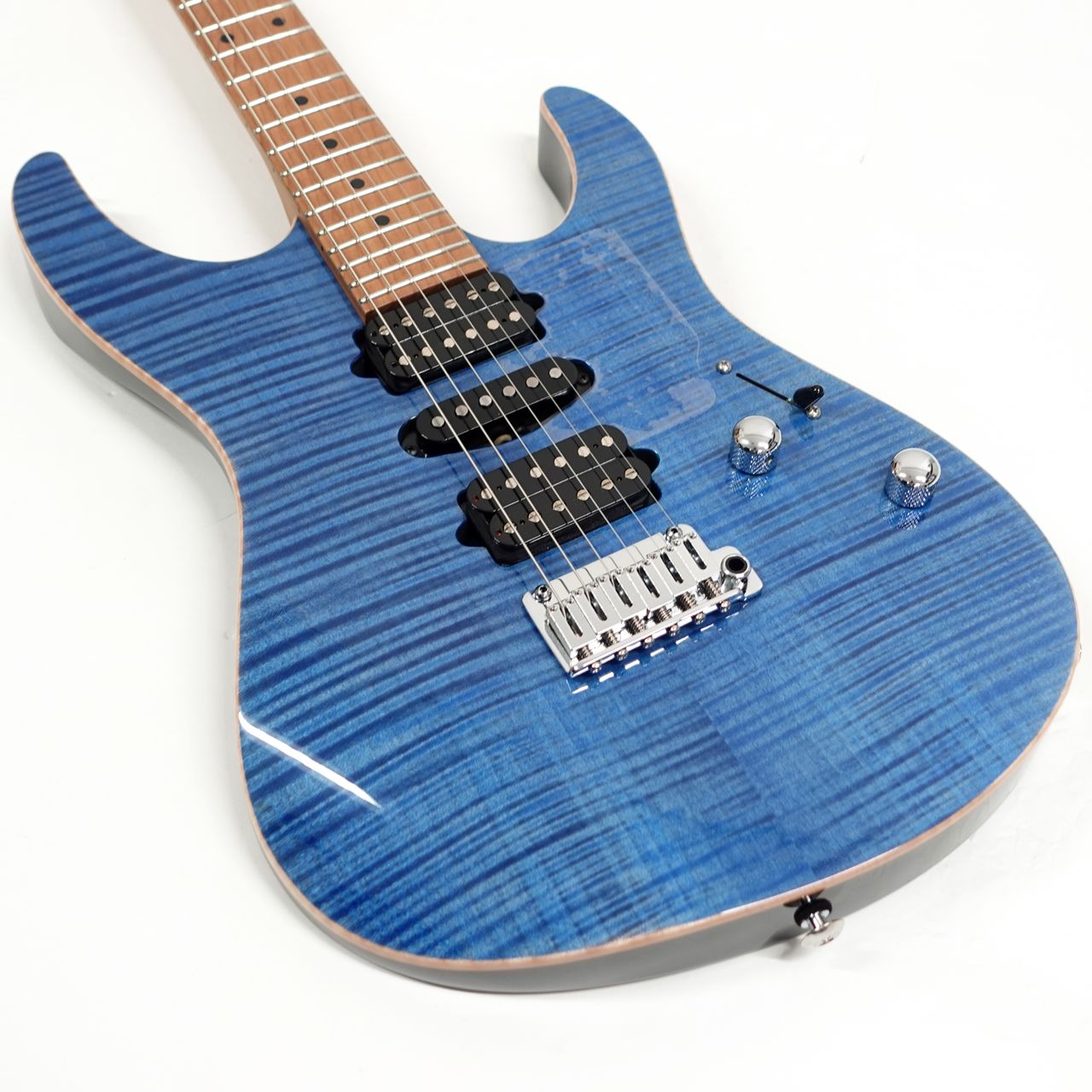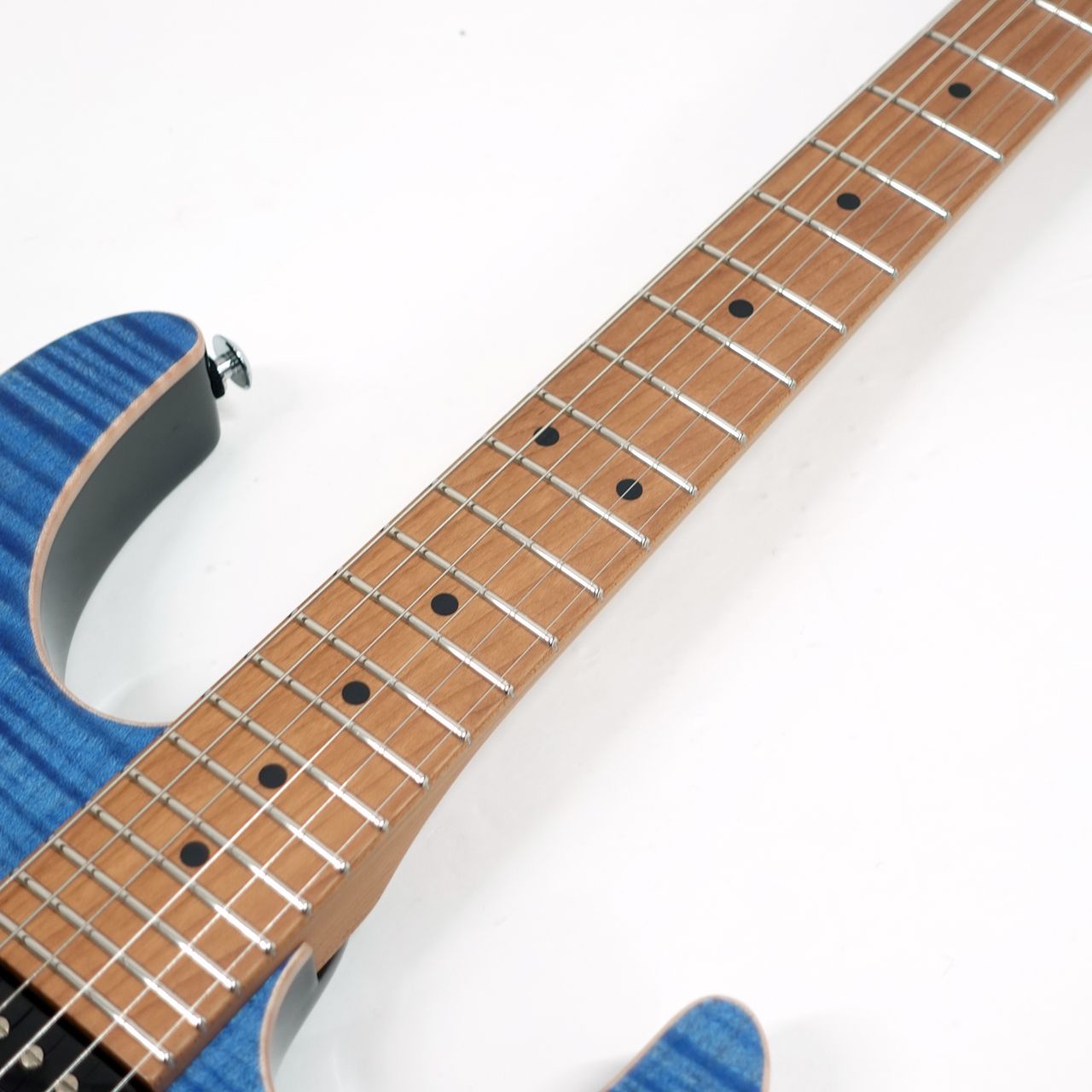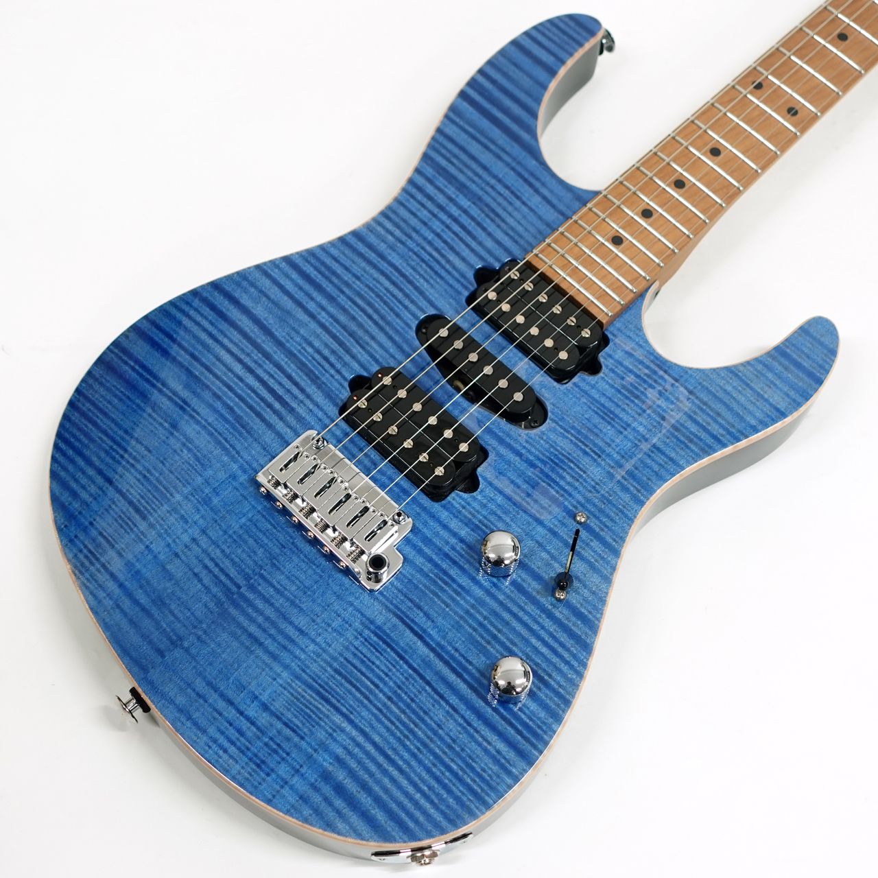 美しい杢目のフレイムメイプルトップ/バスウッドボディのコンビネーションに気温や湿度の変化に対する強い耐性、そして特有の鳴りも持ち合わせるローステッドメイプルネックを採用。指板にもローステッドメイプルを採用したコンパウンドラジアス仕様。