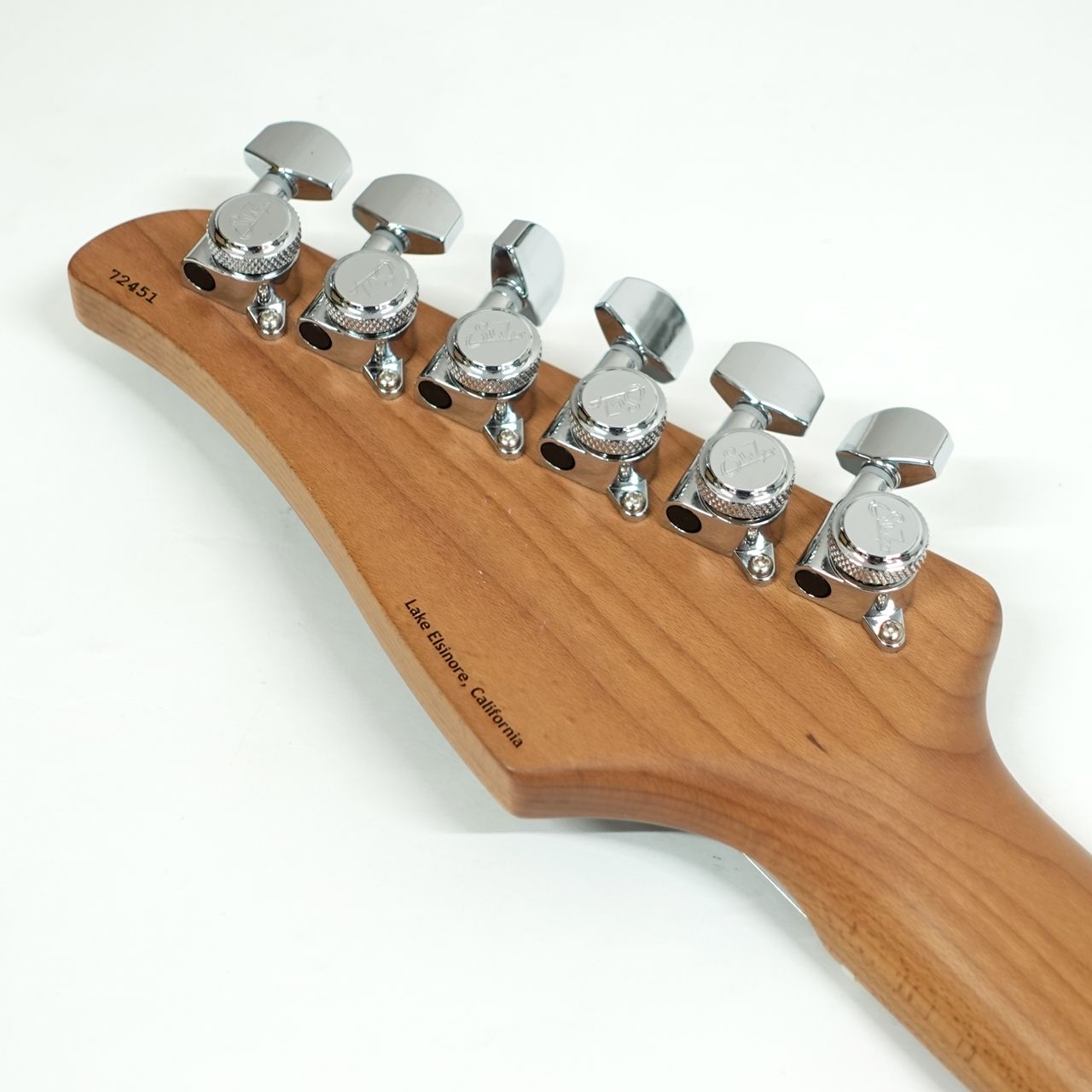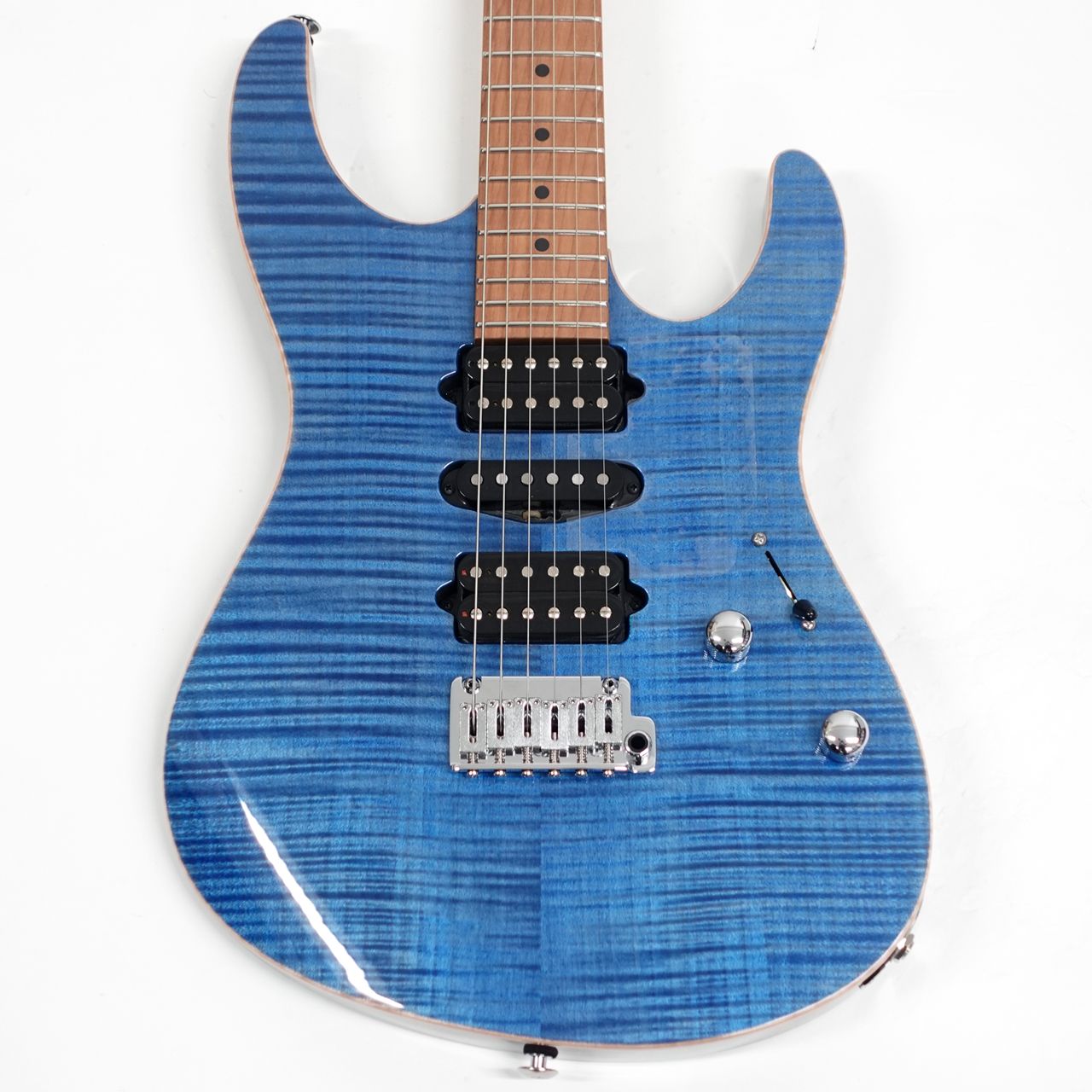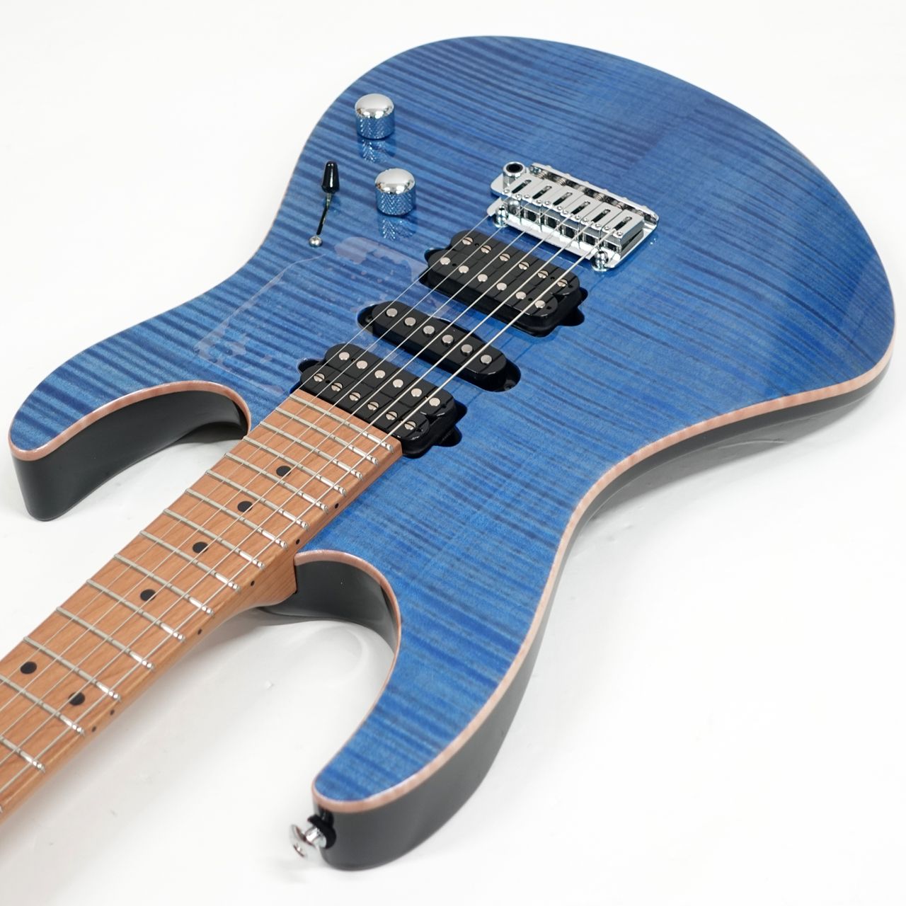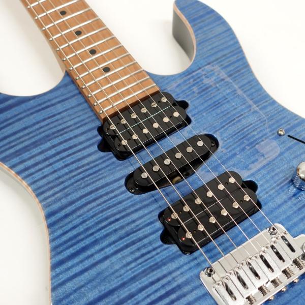 美しい杢目のフレイムメイプルトップ/バスウッドボディのコンビネーションに気温や湿度の変化に対する強い耐性、そして特有の鳴りも持ち合わせるローステッドメイプルネックを採用。指板にもローステッドメイプルを採用したコンパウンドラジアス仕様。