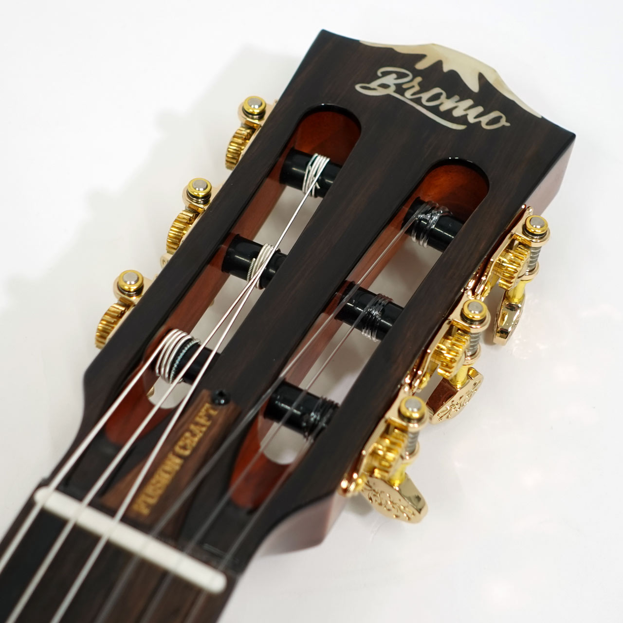 ヴィンテージ・ゴールド・メッキのマシン・ヘッドは、軽量なデザイン、高い精度、美しさを兼ね備えており、Bromo Guitarsロゴとチューニング・キーに施されたアーティスティックなエングレーヴィング・パターンが、このギターの高級感とプレミアム感を高めています。