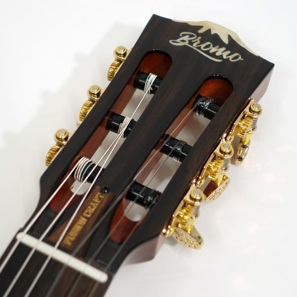 細かな装飾などルックスにも拘っており、オープン・スタイルのヘッドストック・デザインは、軽量化を考慮しただけでなく、クラシックな美しさを誇り、ギター全体のデザイン・スタイルによりマッチしています。マザー・オブ・パールのヘッド・ロゴをはめ込むことで、Bromo Guitarsのアイコンである山型のデザインがより強調されています。