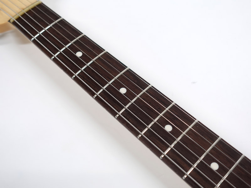 3弦が巻き弦からプレーン弦に変わっていたこの時代の仕様にあわせて3弦ポールピースの高さを上げてローズウッド指板のストラトキャスターらしいバランスになっています。