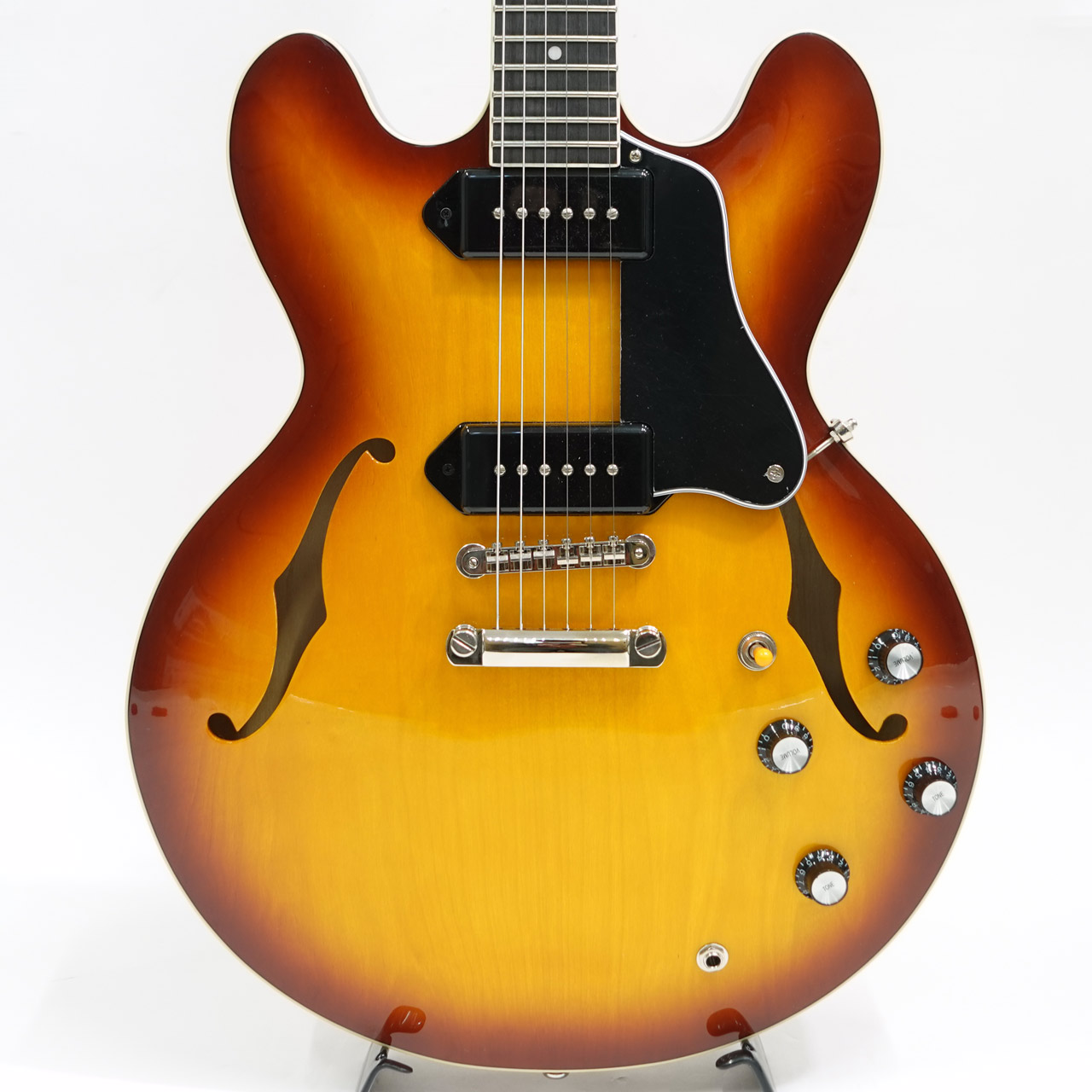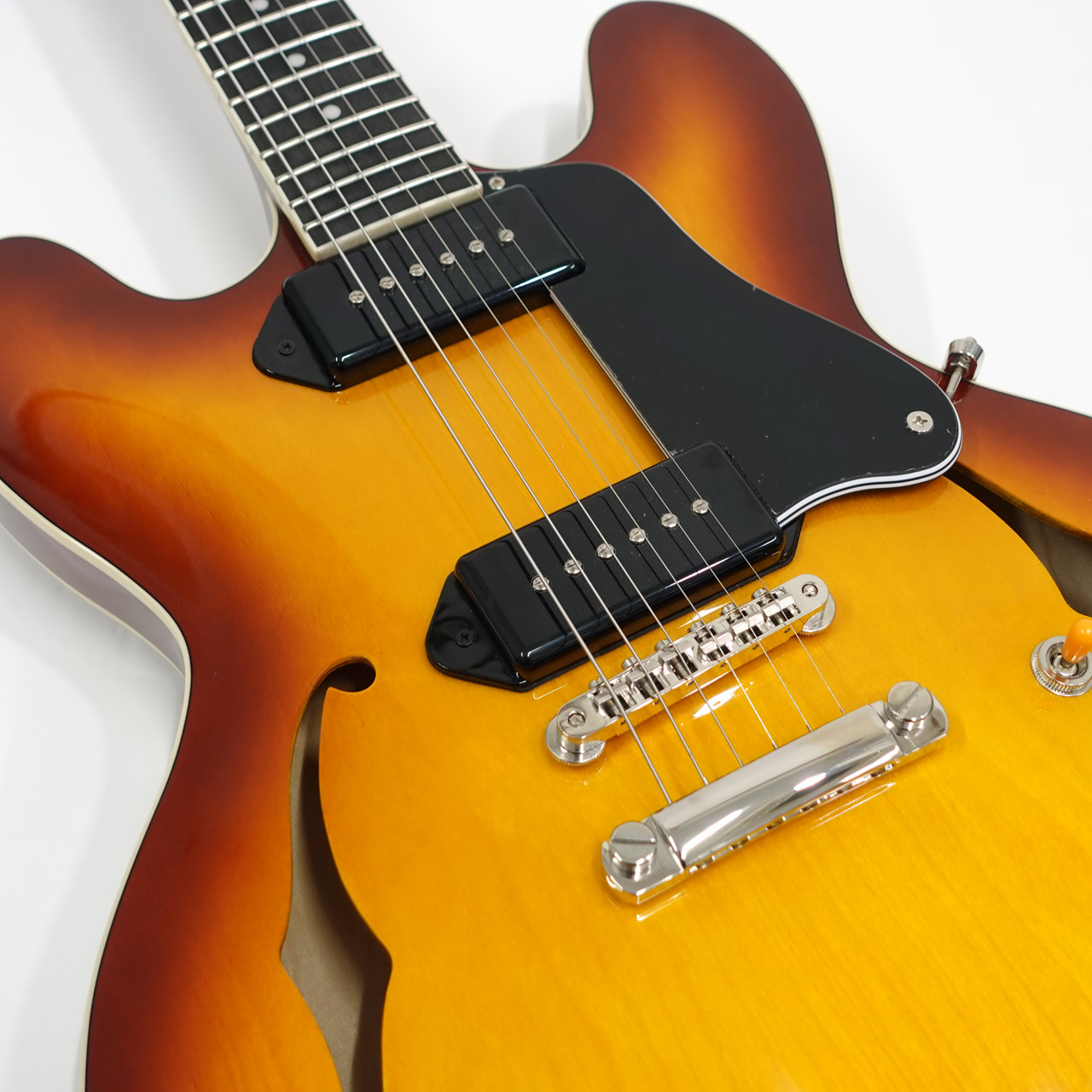 ピックアップにはオリジナルのP-90を搭載し、シングルながら太さのあるミッドレンジがおいしい甘いサウンドを出力。セミホロウ構造で芯もしっかりとあり、クリーンからドライブまで艶のあるサウンドです。