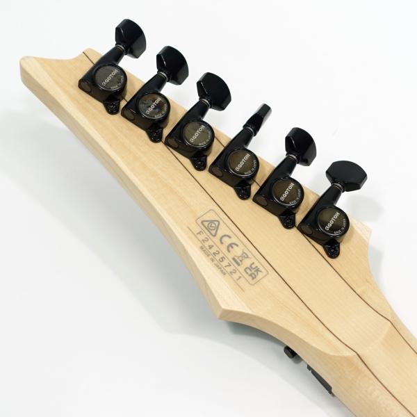 定番のRGシェイプにバスウッドボディ、メイプルとウォルナットの5PラミネイトSuper Wizardネック、メイプル指板。RGらしい極薄のネックで極限まで軽い握り心地や430Rの指板でハイフレットまでストレスのない演奏性を持ちます。