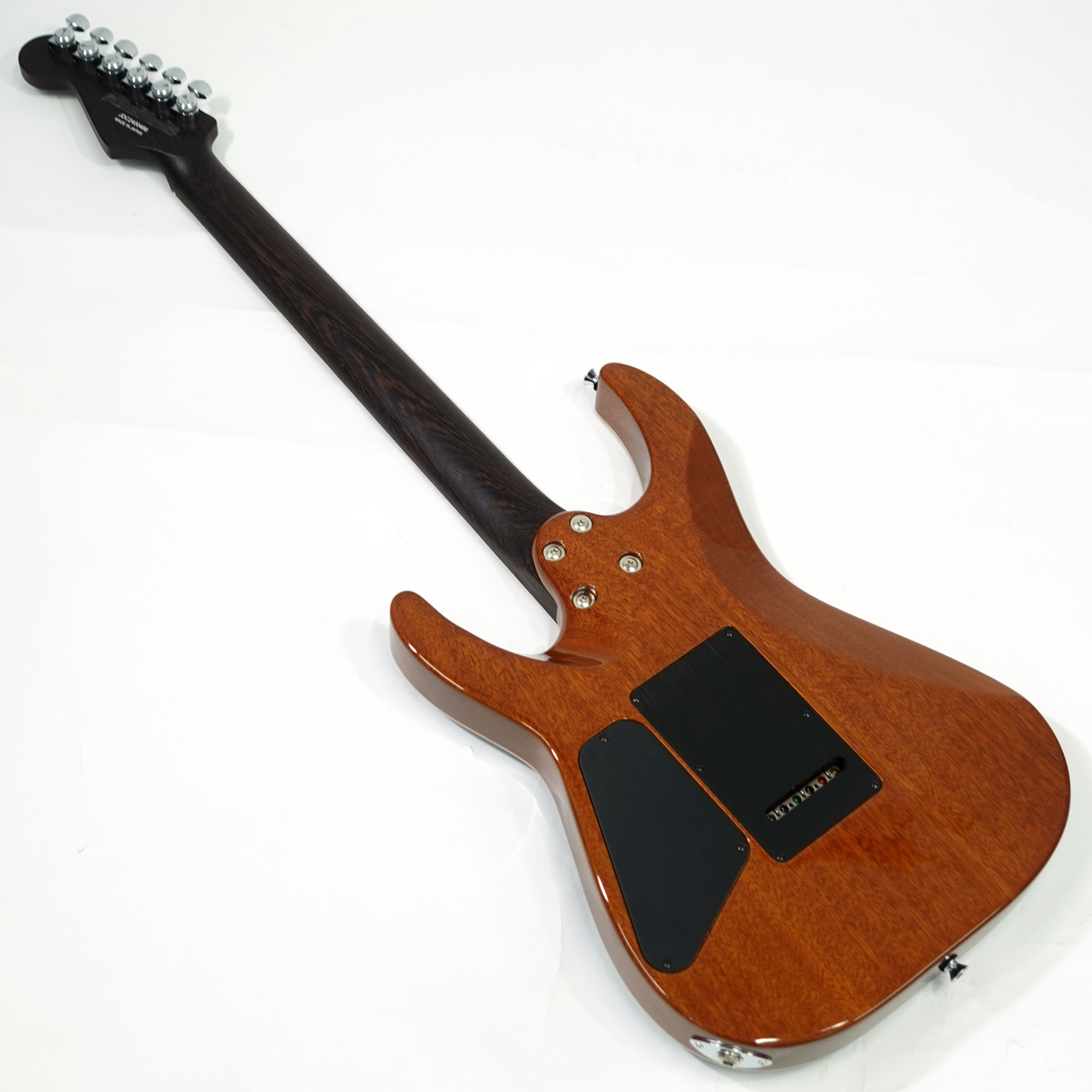 その他、5ウェイブレードスイッチング、No-Loadトーンコントロールと&ボリュームコントロール用のドームスタイルノブ、Gotoh Custom 510リセスドトレモロブリッジ、Charvelダイキャストロッキングチューナー、ブラックハードウェアなど、プレミアムな特徴を備えています。