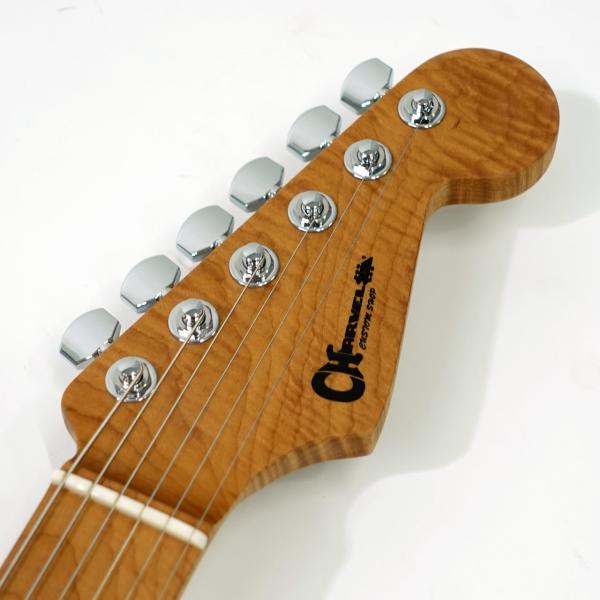 また、ゴーヴァンが求める広大なサウンドの開放感と躍動感を与える、特別に巻かれた3つのCharvelカスタムMFピックアップは5ウェイスイッチで切り替えることができ、高い汎用性のあるHSH構成で配置されています。更には、ブリッジとネックのハムバッカーでシングルコイルをシミュレーション出来る2ウェイミニトグルスイッチ、ブラス製ピンロケーター付の2つのLuminlay製ナンバードドームコントロールノブ(ボリューム、トーン)、 Tremolo-Noユニット付きのオーバーサイズブラス製ブロック、牛骨ナットとクロムハードウェアを備えたUSA製のリセスドCharvelロッキングトレモロブリッジがあります。