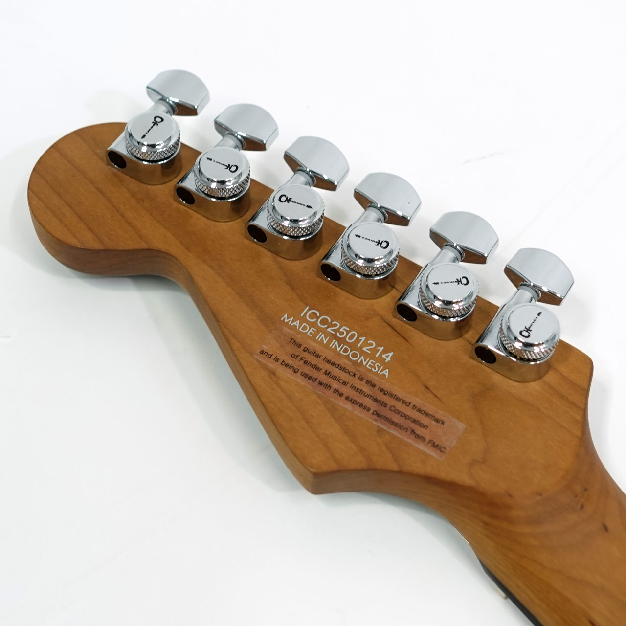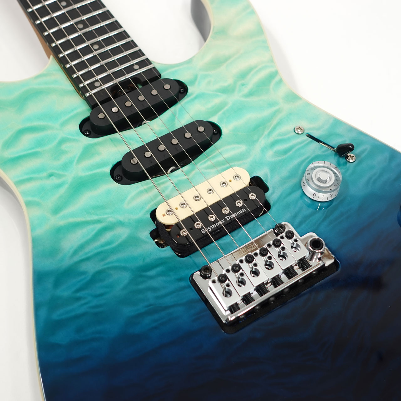 ピックアップはHSS構成で、ブリッジにはダイレクトマウントのSeymour Duncan Full Shred TB-10、ミドルにはダイレクトマウントのSeymour Duncan Custom Flat Strat SSL-6シングルコイル、ネックにはSeymour Duncan Custom Flat Strat SSL-6 RWRPシングルコイルを搭載。ハムバッカーらしいしっかりとした歯切れのあるサウンドと、ヴィンテージ感あふれる生き生きとしたトーンを兼ね備えています。