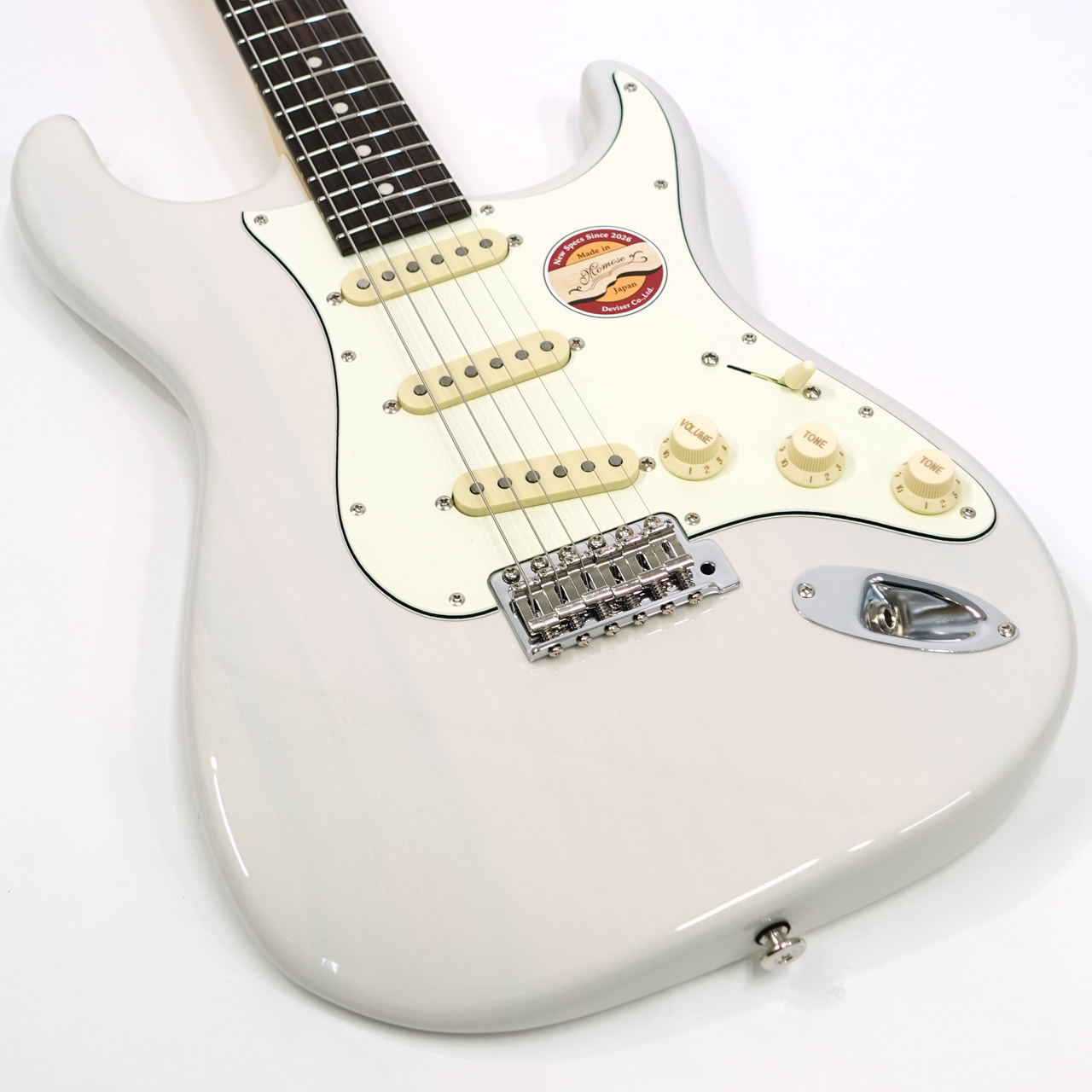 Momose製品のリニューアルに伴い、新たに開発されたピックアップ”Awake”を搭載。フロントとセンターポジションには甘い高域と自然なトーンを生み出すアルニコ4マグネットを使用する一方、細い音質になりがちなリアポジションにはパワフルでエッジの効いたサウンドを求めて、アルニコ5マグネットを使用。