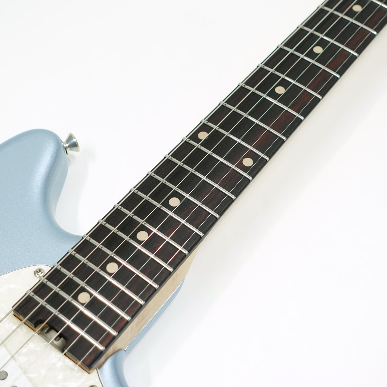 鍔出しではない22フレットにJescarステンレスフレット、指板サイドには蓄光のルミンレイを採用。