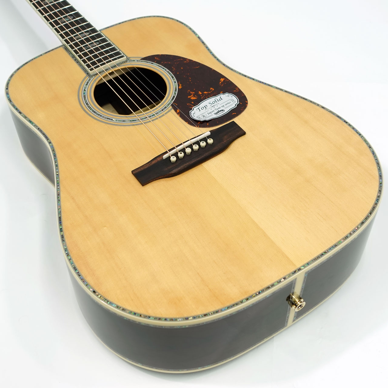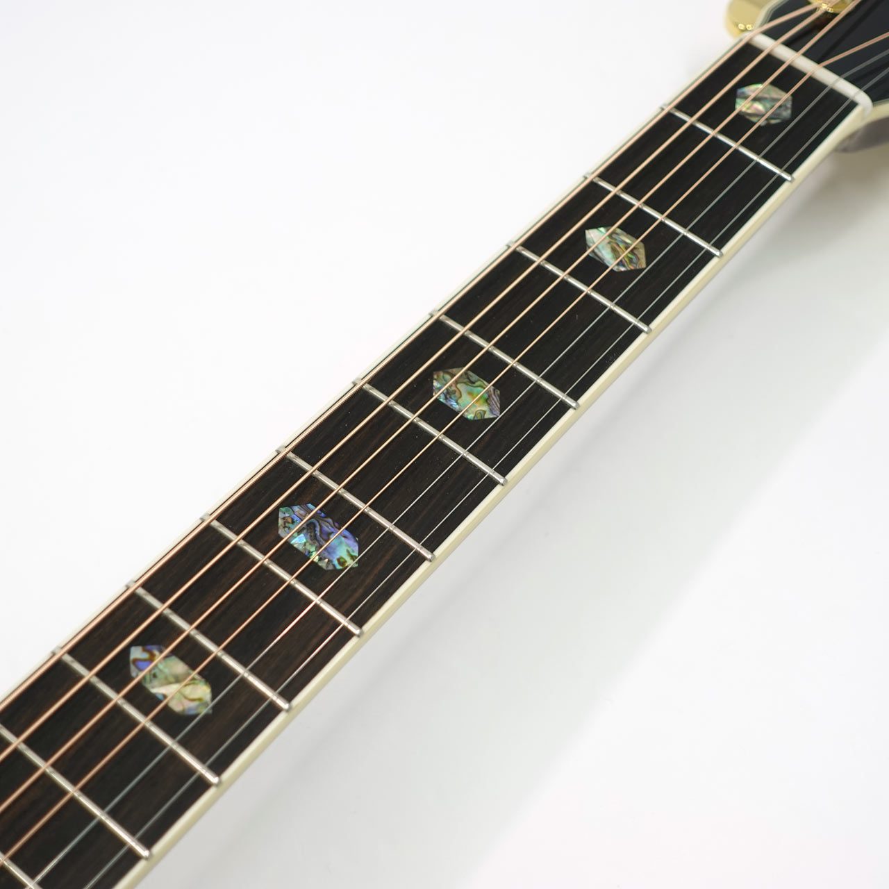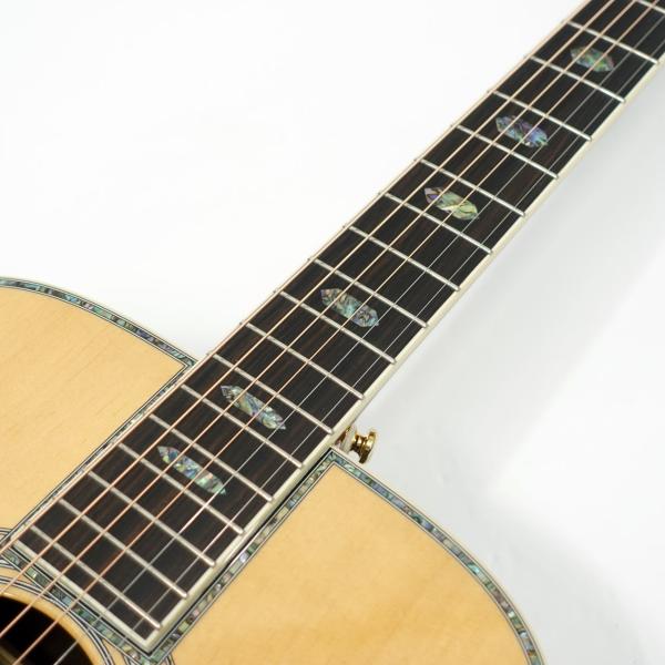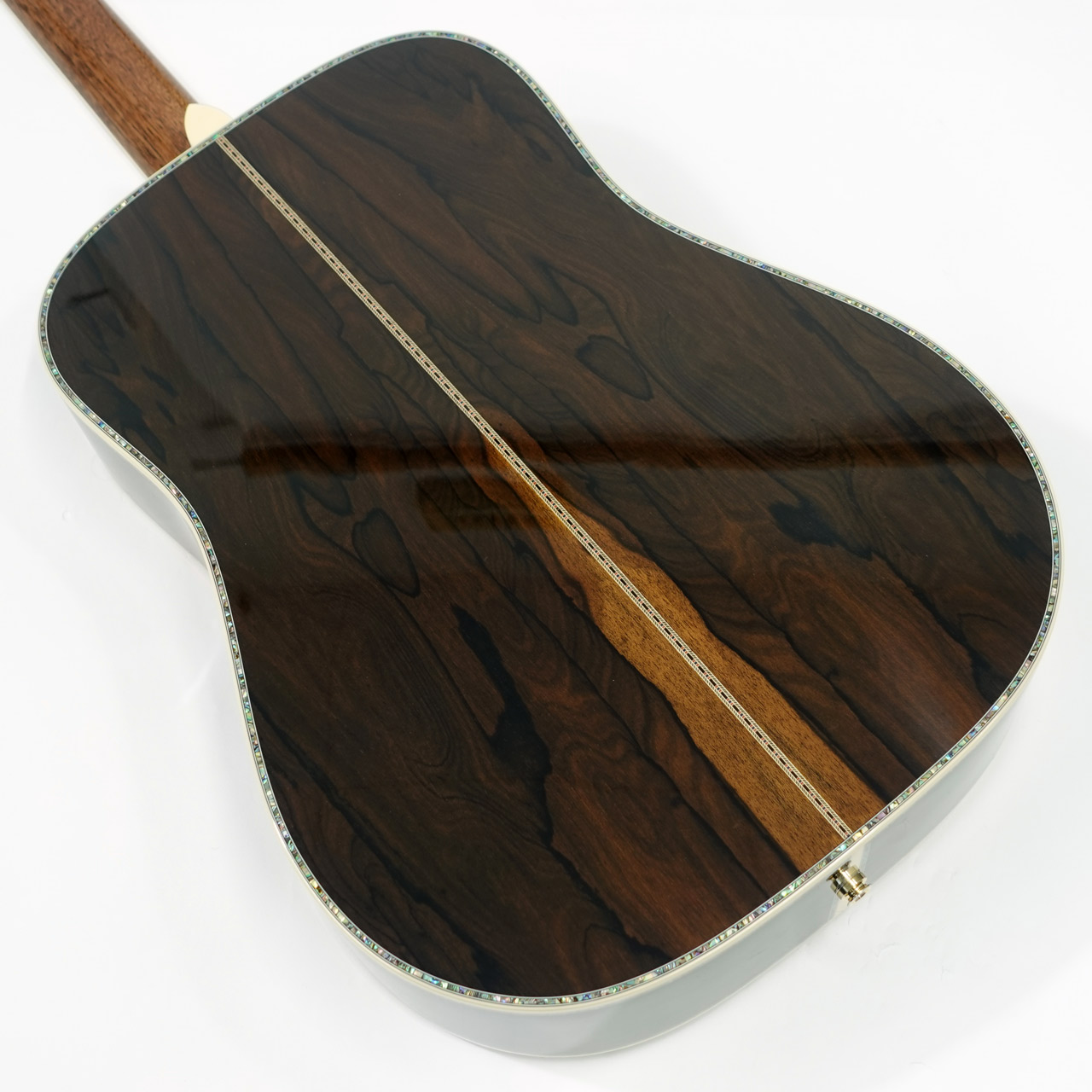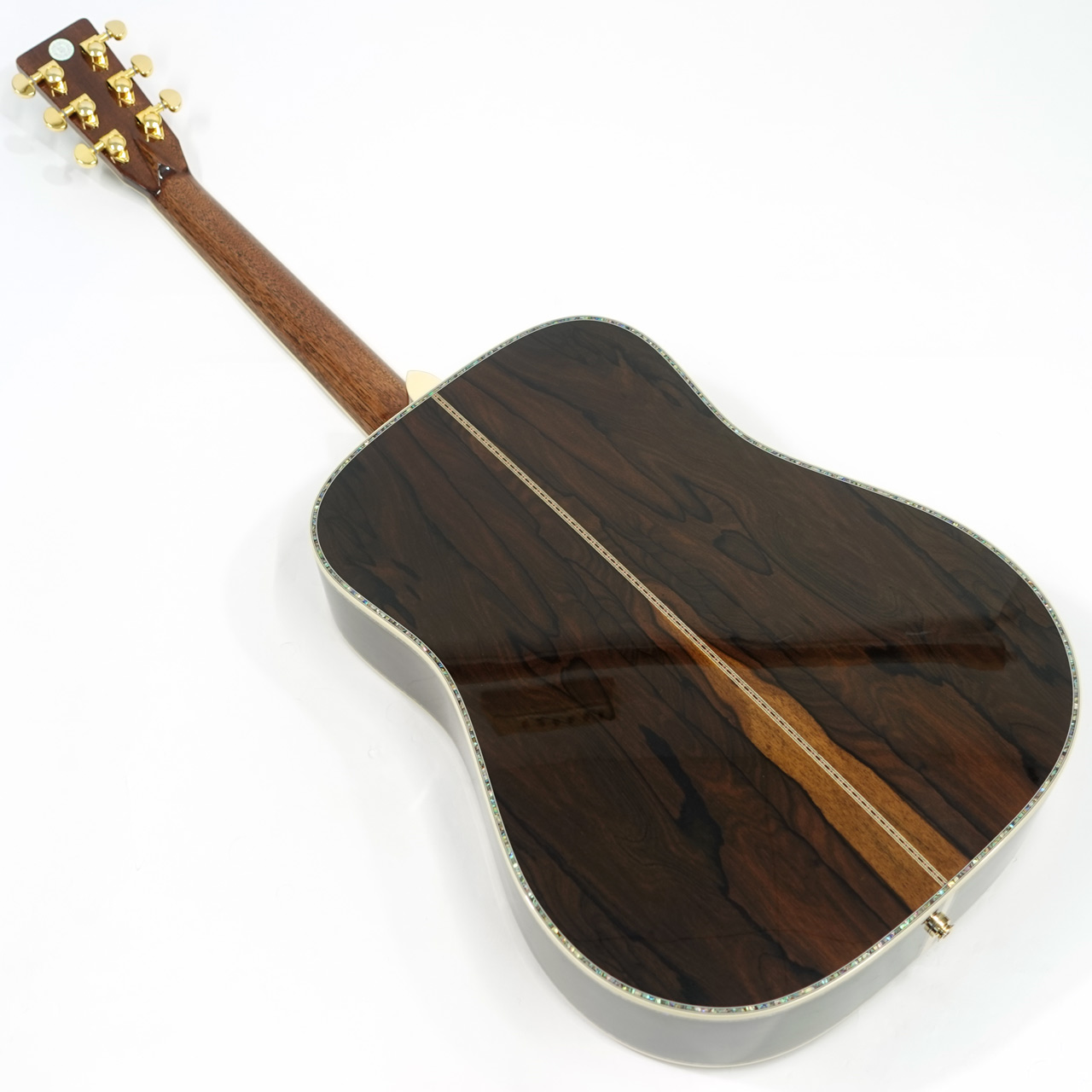 ボディサイドバック材には複雑な杢理が特徴的なジリコテを採用。アバロン貝の装飾と相まって高級感が漂う仕上がりです。