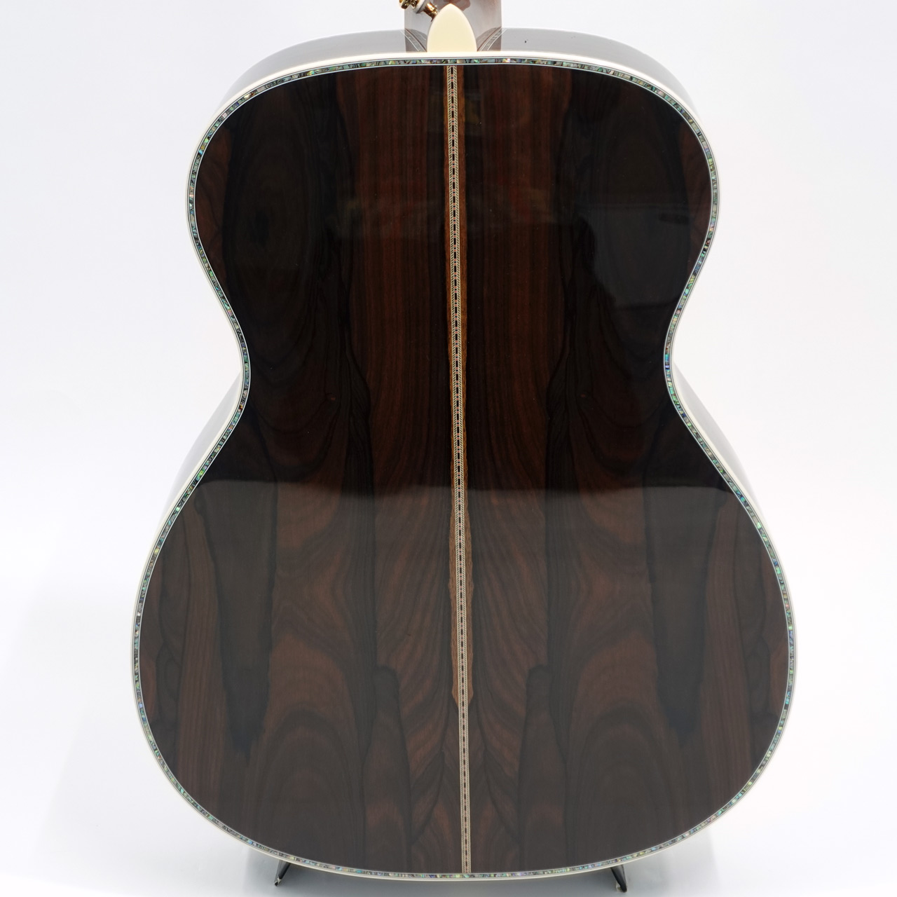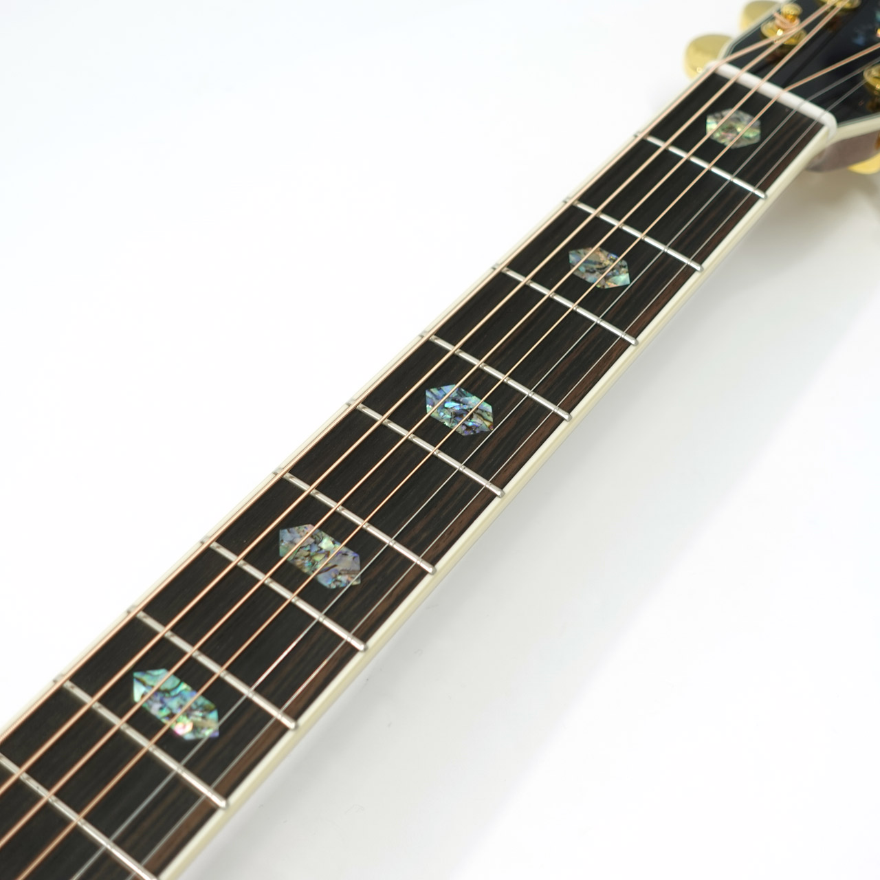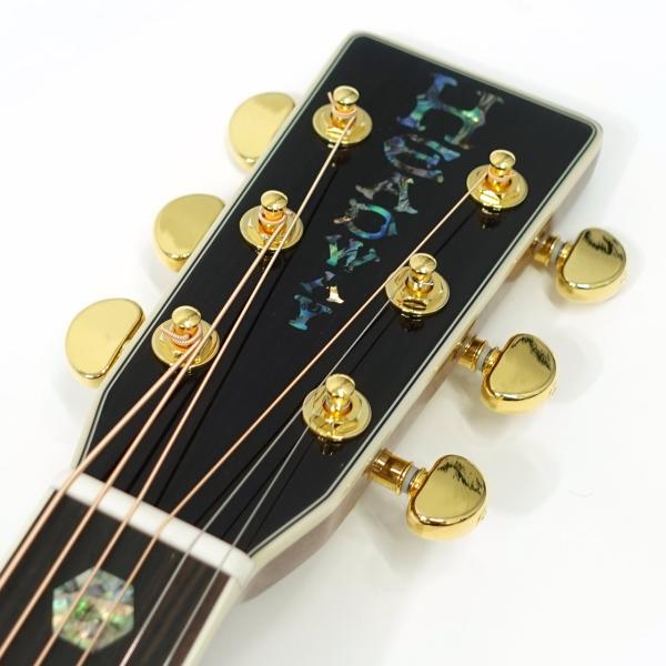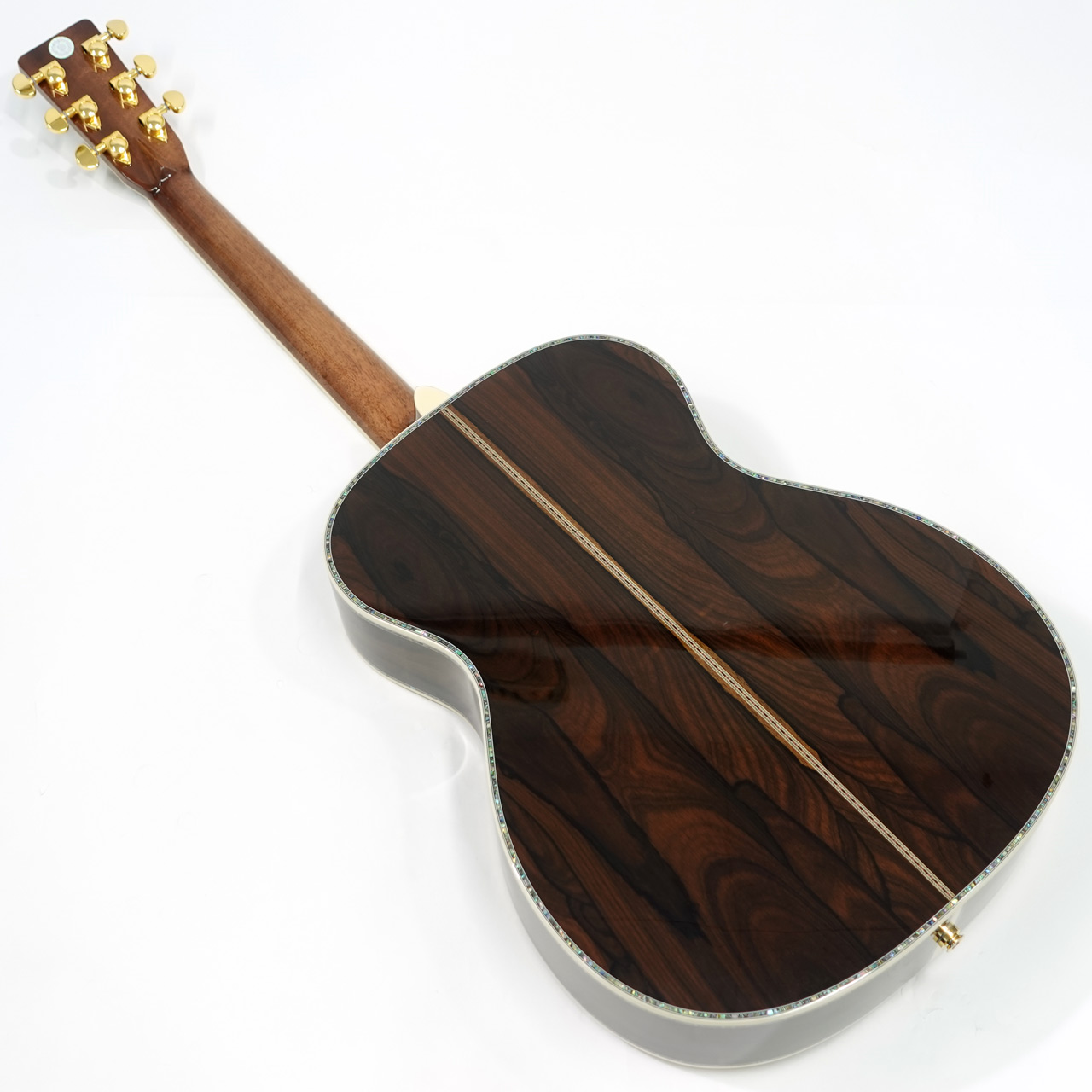 ボディサイドバック材には複雑な杢理が特徴的なジリコテを採用。アバロン貝の装飾と相まって高級感が漂う仕上がりです。