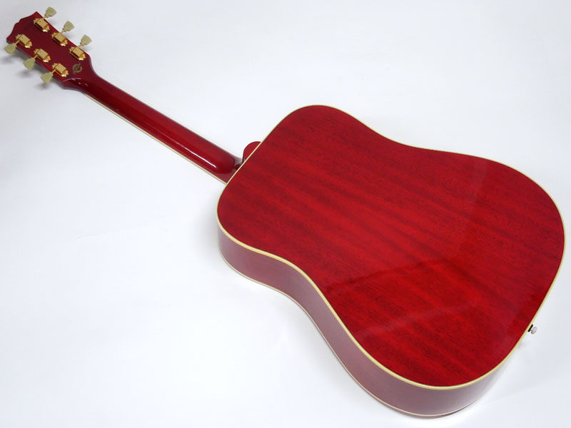 伝統のスクエアショルダーに、トップ材はシトカプルース、サイド&バック材はマホガニー、マホガニー材ネック(ラウンドネック)、約43.8mmナット幅、牛骨ナット、クルーソンスタイルGOTOH GOLDプレート糸巻き、ローズウッド材指板&駒に、ダブルパラレログラムインレイと、定番のチェリーサンバーストで仕上げたカスタムモデルです。