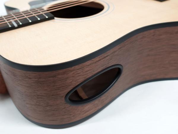 カッタウェイのソングライタースタイルのルックスながらボディサイドにサウンドポートを備え、プレイヤーはいまだかつて聞いたことがないような、演奏中における自身のピュアなアコースティックギター・サウンドを直接的に聞くことができます。