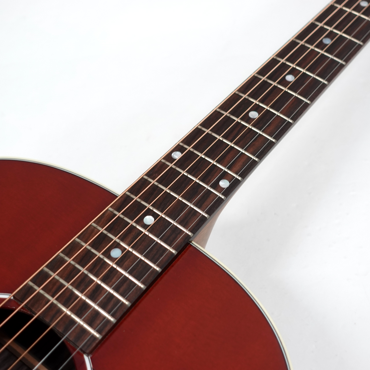 本器はJ-45スタンダードの新バージョンとして復活したローズウッド・バック&サイド仕様のJ-45 Standard Rosewood。世界中のギタリストに愛されるJ-45ならではの演奏性とサウンド特性を備えつつ、ローズウッド・ボディによる低域の豊かなレスポンスと倍音の煌びやかさが特徴的なモデルです。