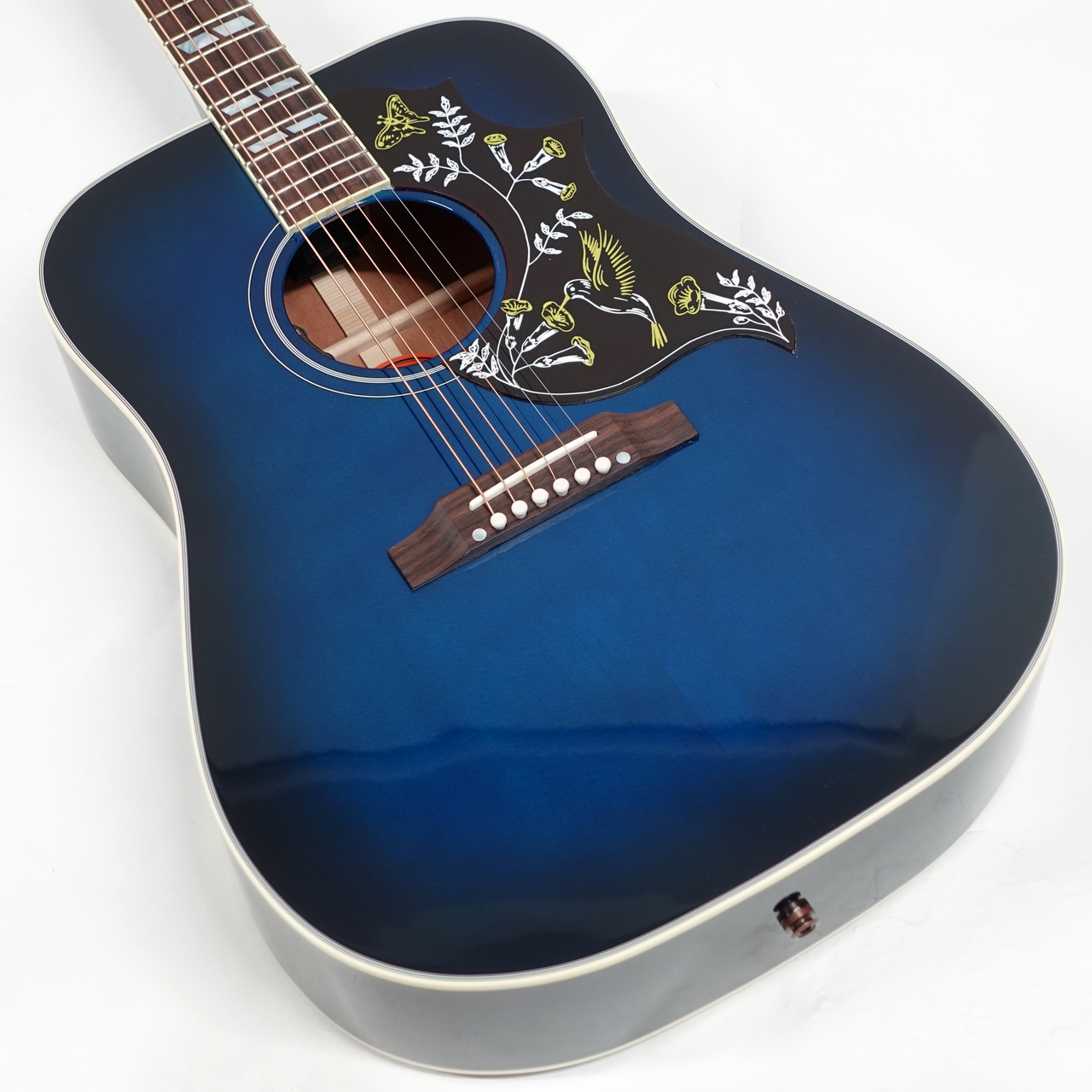 本器は2024年8月に弊社アコースティックギター担当者がアメリカはモンタナ州ボーズマンにあるGibsonモンタナ工場に赴き、現地選定したスペシャルモデル。Hummingbird Originalをベースとしながら、レアなブルーバーストカラーを纏った限定モデルとなります。