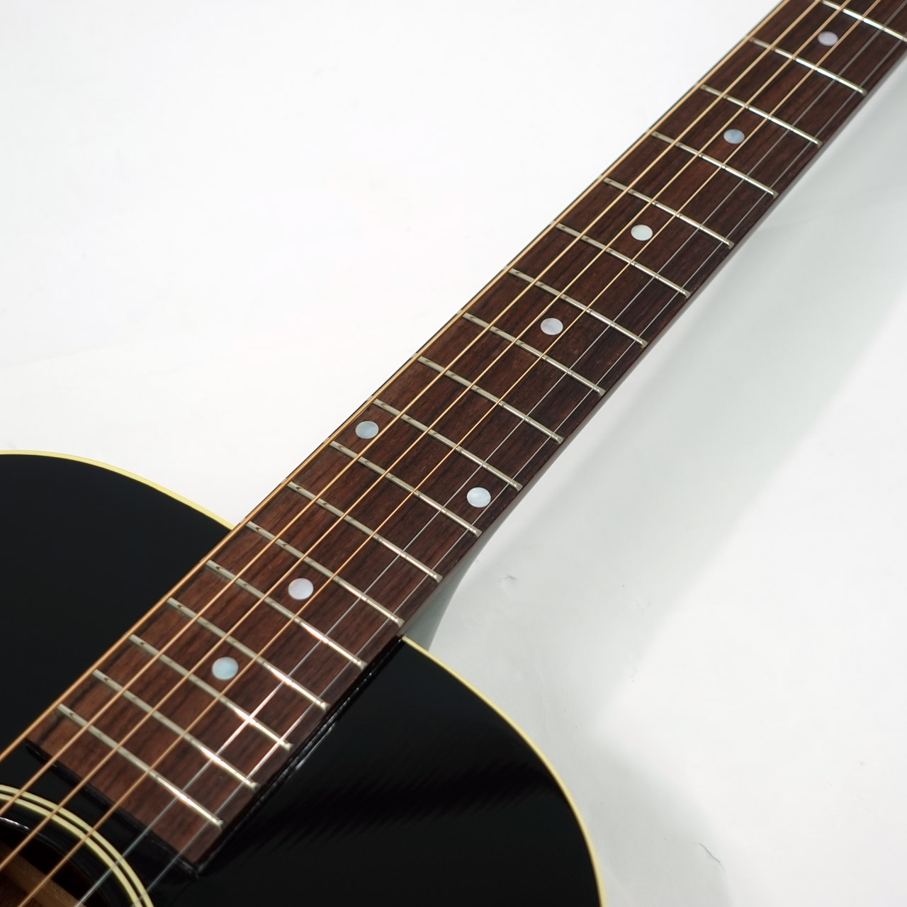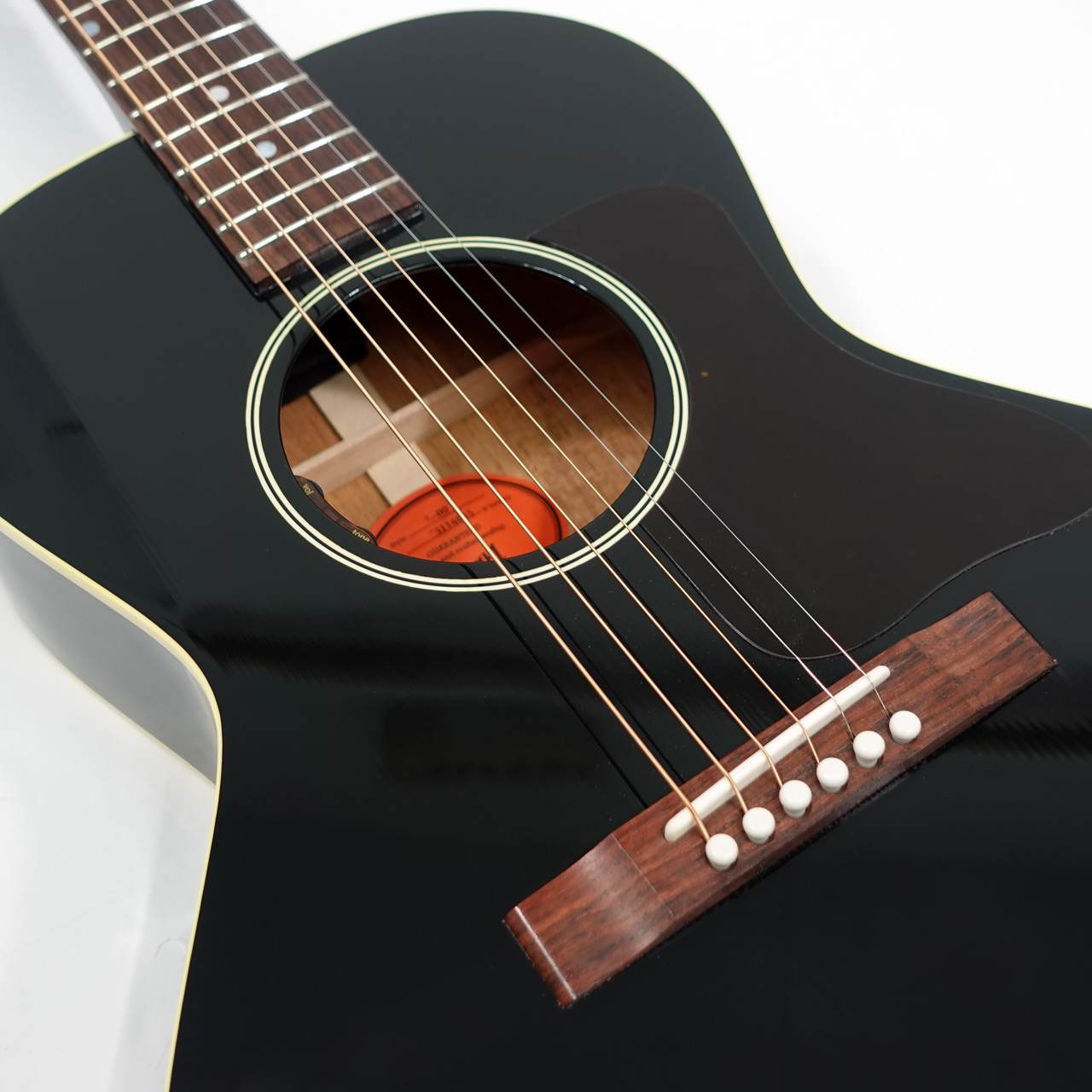 本器は人気の高いL-00のエボニーカラー。1932年から1946年に製造されたL-00は、非常にバランスの取れたスモールボディのお手本のような存在で、主にブルーズ系ギタリストから多くのフォロワーを獲得してきました。