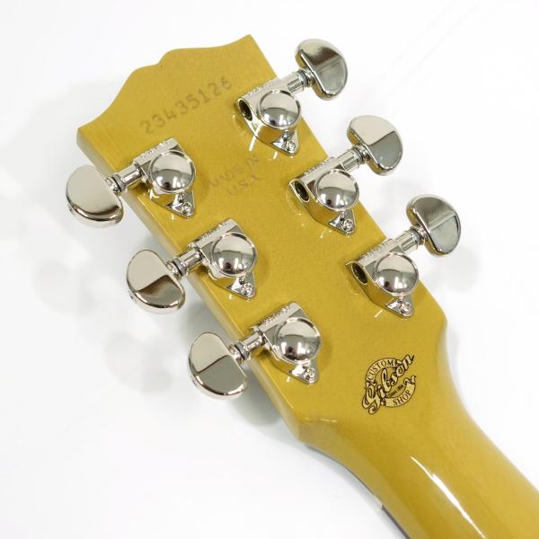 レスポールスペシャルの印象が強いTVイエローカラーはマホガニーの杢目がうっすら透ける仕上げで一味変わった雰囲気があります。