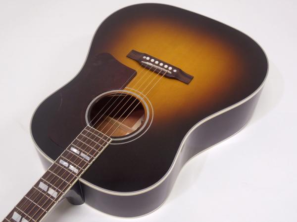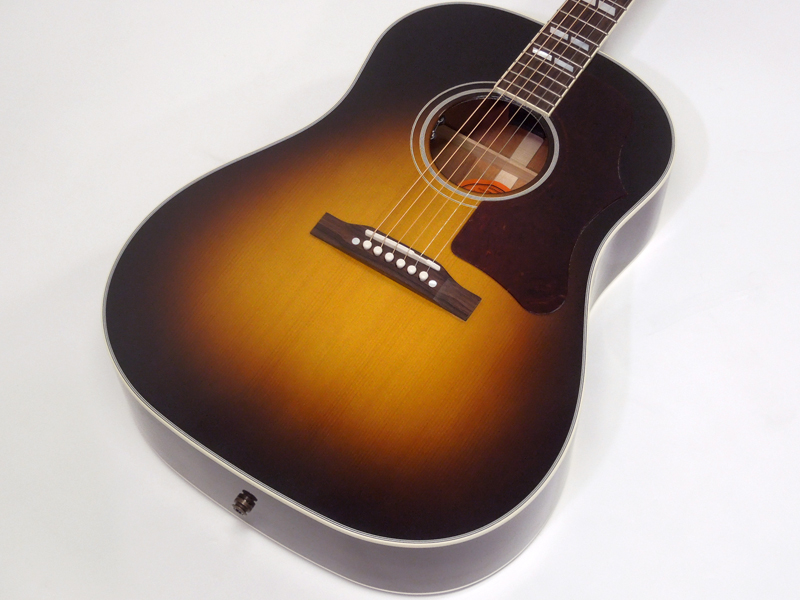 スペック的にはJ-45と近いのですが、音色は別。パワフル且つ軽い立ち上がりで鳴ってくれており、ダイナミックで泥臭い、ギブソンならではのサウンドニュアンスを持ち、演奏性も高く扱いやすい為、実用面でも満足いただける素晴らしい仕上がりです。