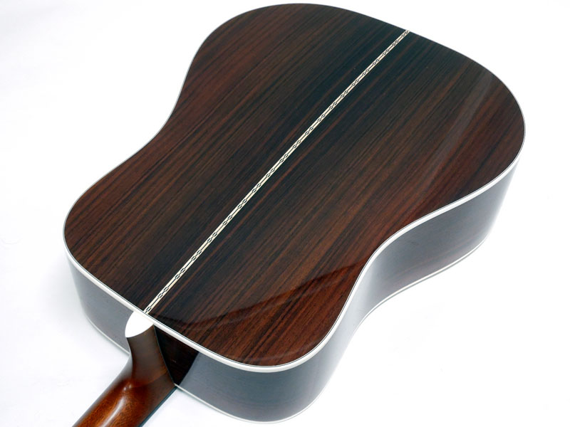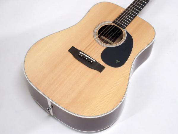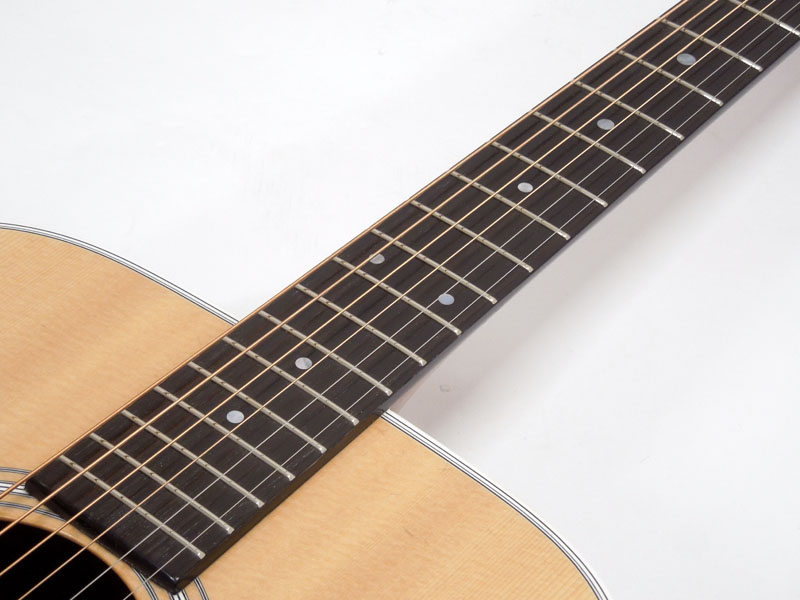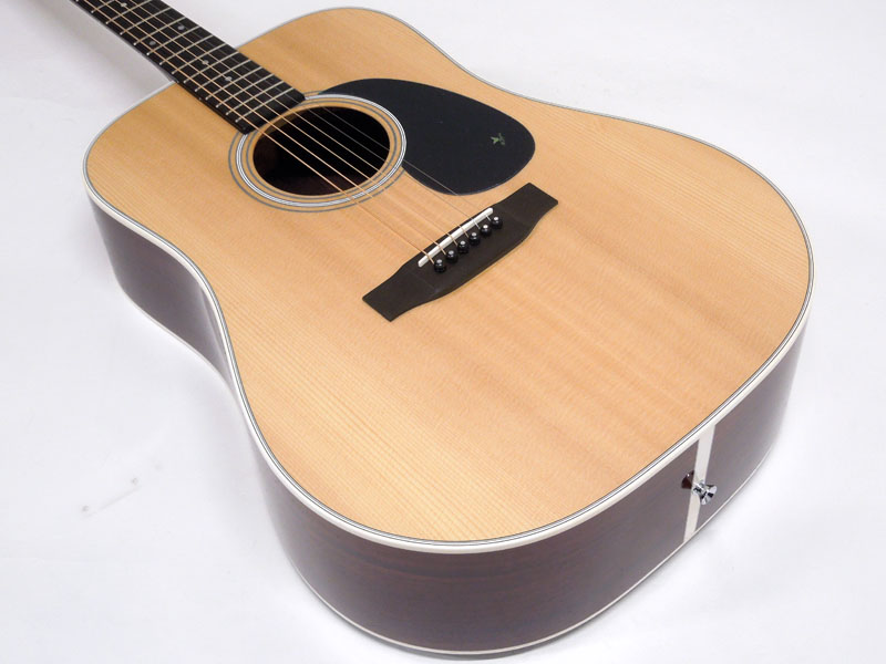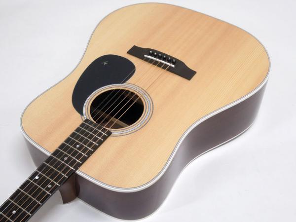 豊かな倍音が魅力のドレッドノートボディーを基に、スプルース材単板トップ、ローズウッド材単坂サイド&バック、マホガニー材ネック、エボニー材指板&駒、42mmナット幅、645mmスケールと