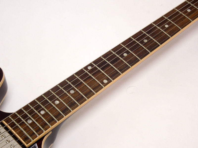 クウォーターソーンのマホガニーネックにローズウッド指板、ドットポジションマークのルックス。