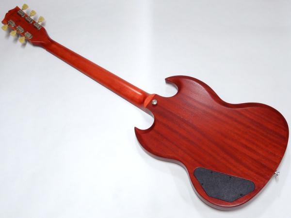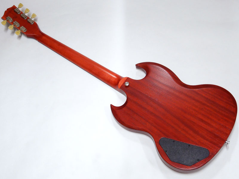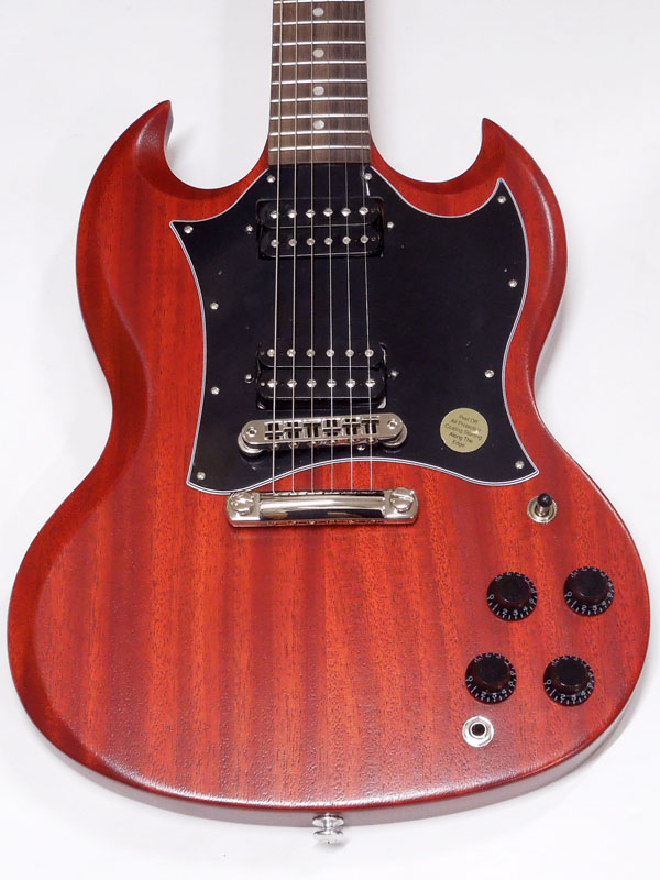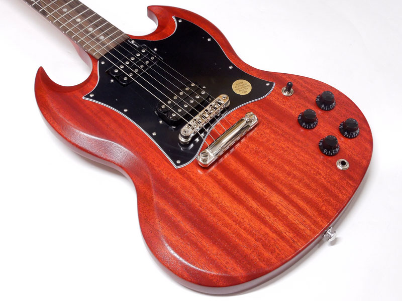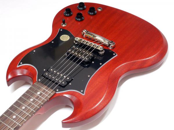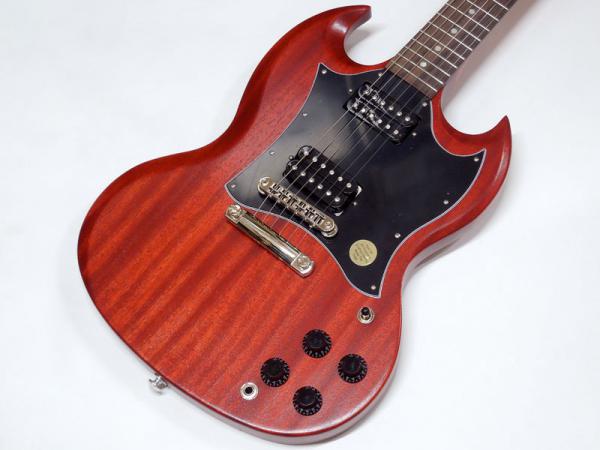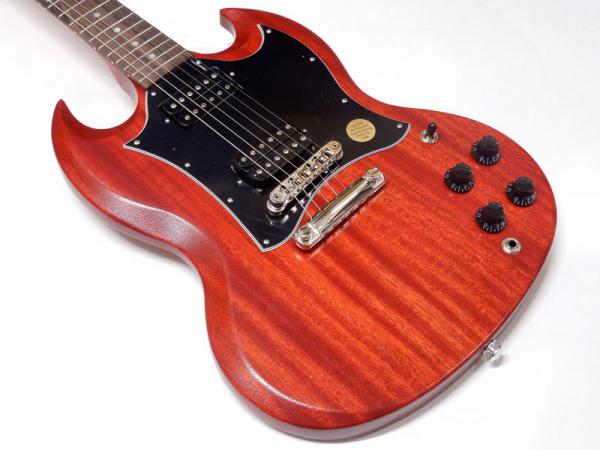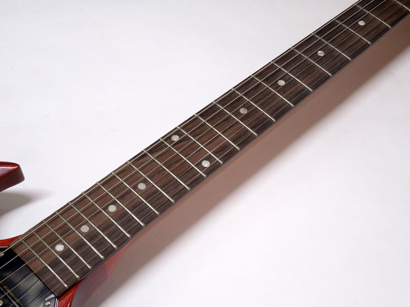 シンプルな艶消しマホガニーボディにメイプルネック、ローズウッド指板。メイプルネックはラウンドシェイプで安定したグリップ感があります。