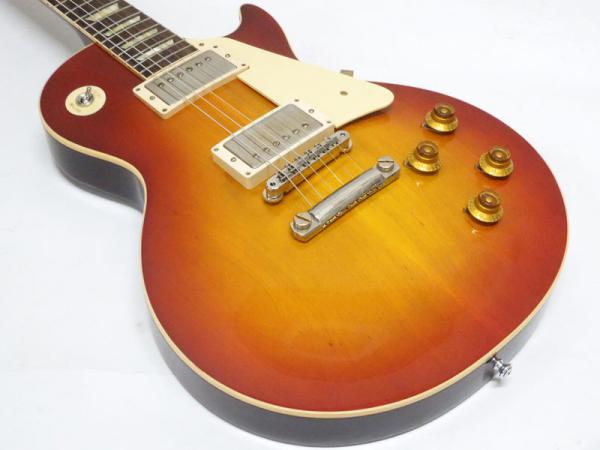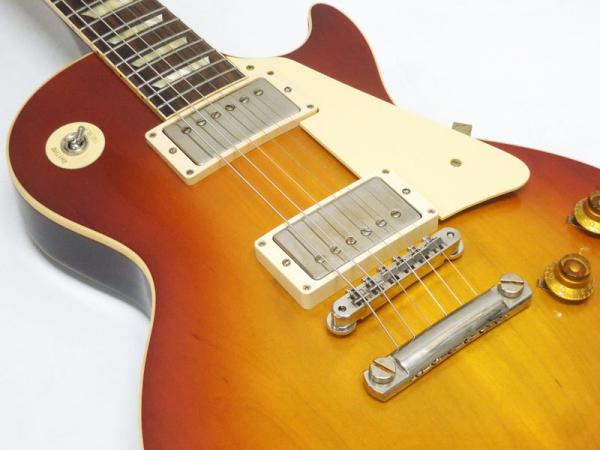 上質な材を厳選しディープジョイント、ネック角、ヘッド角、アーチ形状など当時のスペックを見事に再現。ネックの丸いグリップ感は見事な仕上げ。ウォッシュドチェリーサウンバーストをV.O.S仕上げで経年変化を再現しています。ピックアップはカスタムバッカーアルニコIIIを採用。抜群のバランスとツヤを持っています。