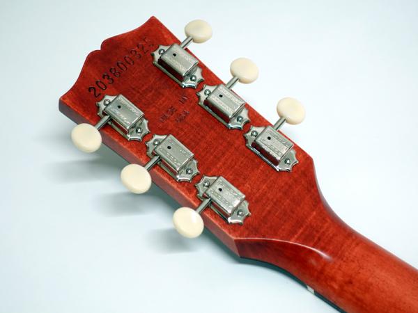 ヴィンテージ・デラックス・ホワイトボタン・チューナー、コンペンセイテッド・ラップアラウンド・テイルピースの採用により、シンプルながらレスポールスペシャルならではのデザインを踏襲しています。
