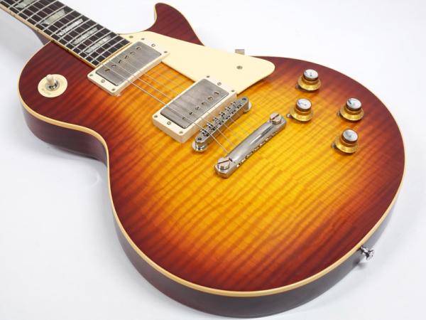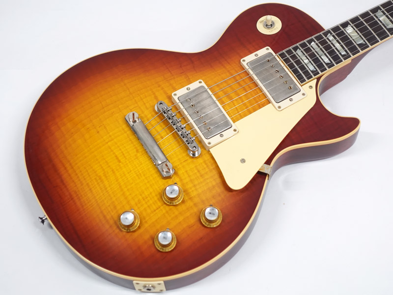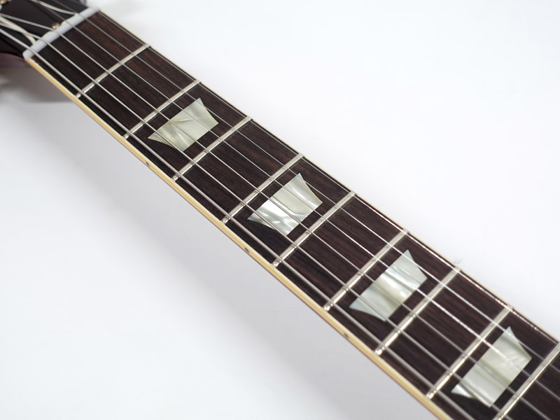 マホガニーボディにメイプルトップ、マホガニーネックにローズウッド指板。カスタムショップ製らしく伝統のハイドグルーにて接着されています。ネックは60年代仕様のスリムテーパーで弾きやすさ抜群です。