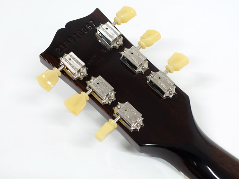 オーソドックスなメイプルトップのスタイルにギブソンの美しいグロスニトロセルロースラッカー塗装はツヤが美しく深い色合いを出しています。マホガニーの「Rounded "C"」シェイプネックは程よい握り心地の太さで安定したギタープレイにもってこいな形状、ロールドバインディング仕様で握りこんだ際のストレスもありません。