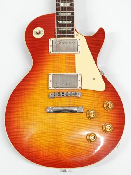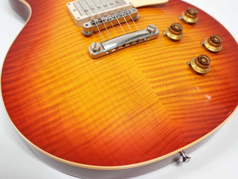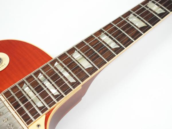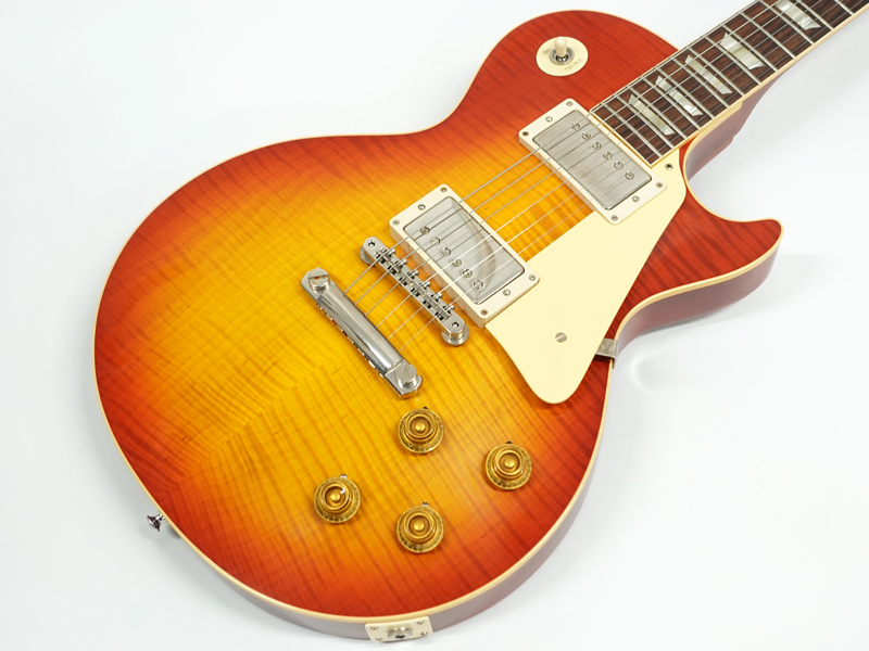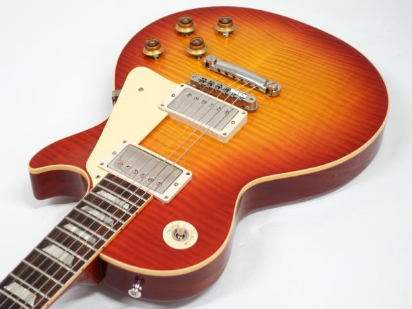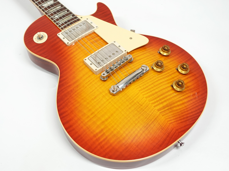 1Pマホガニーボディにフィギャードメイプルトップ、マホガニーネックにインディアンローズウッド指板。カスタムショップ製らしく伝統のハイドグルーにて接着されています。ディープジョイント、ネック角、ヘッド角、アーチ形状など高い再現を誇りサウンド、ルックス共に高い完成度です。レスポール60周年の大きなターニングポイントを経てオールニカワ接着、True Histoicパーツを採用し、サウンドとルックスは更にブラッシュアップ。高い完成度となっております。オリジナルトーンをさらに追及するためバンブルビーコンデンサーの見直し、ボリューム/トーンポットはより自然なカーブとなり、どのポイントでも使えるサウンドとなっております。