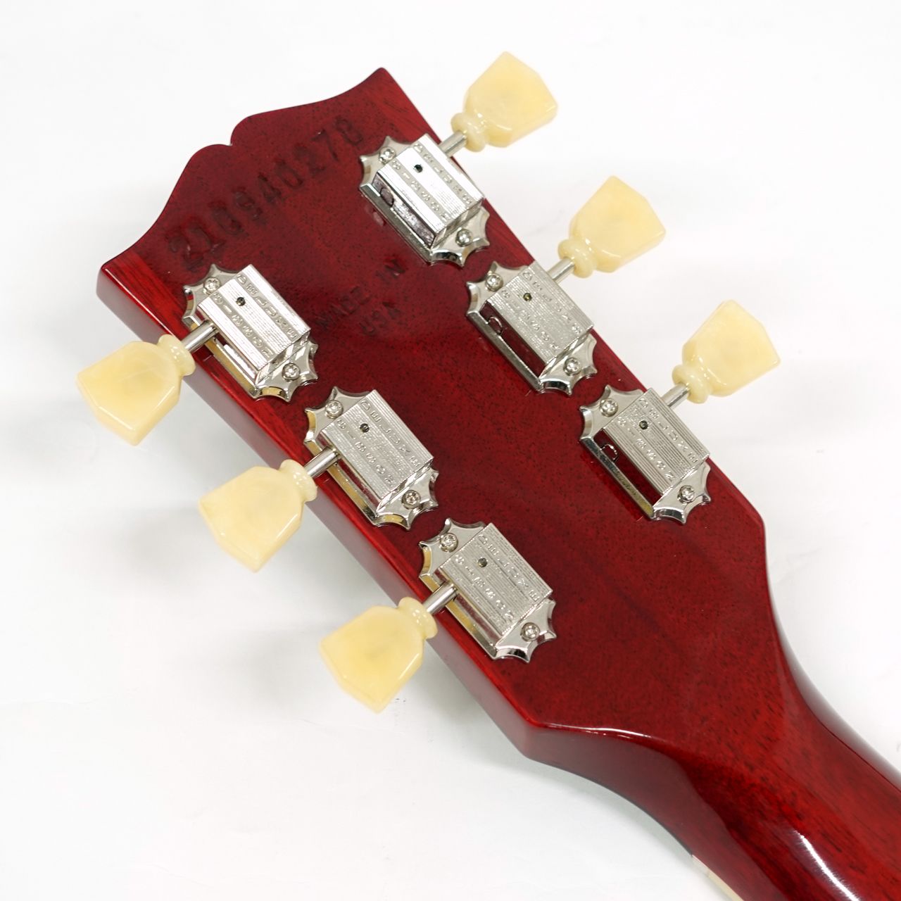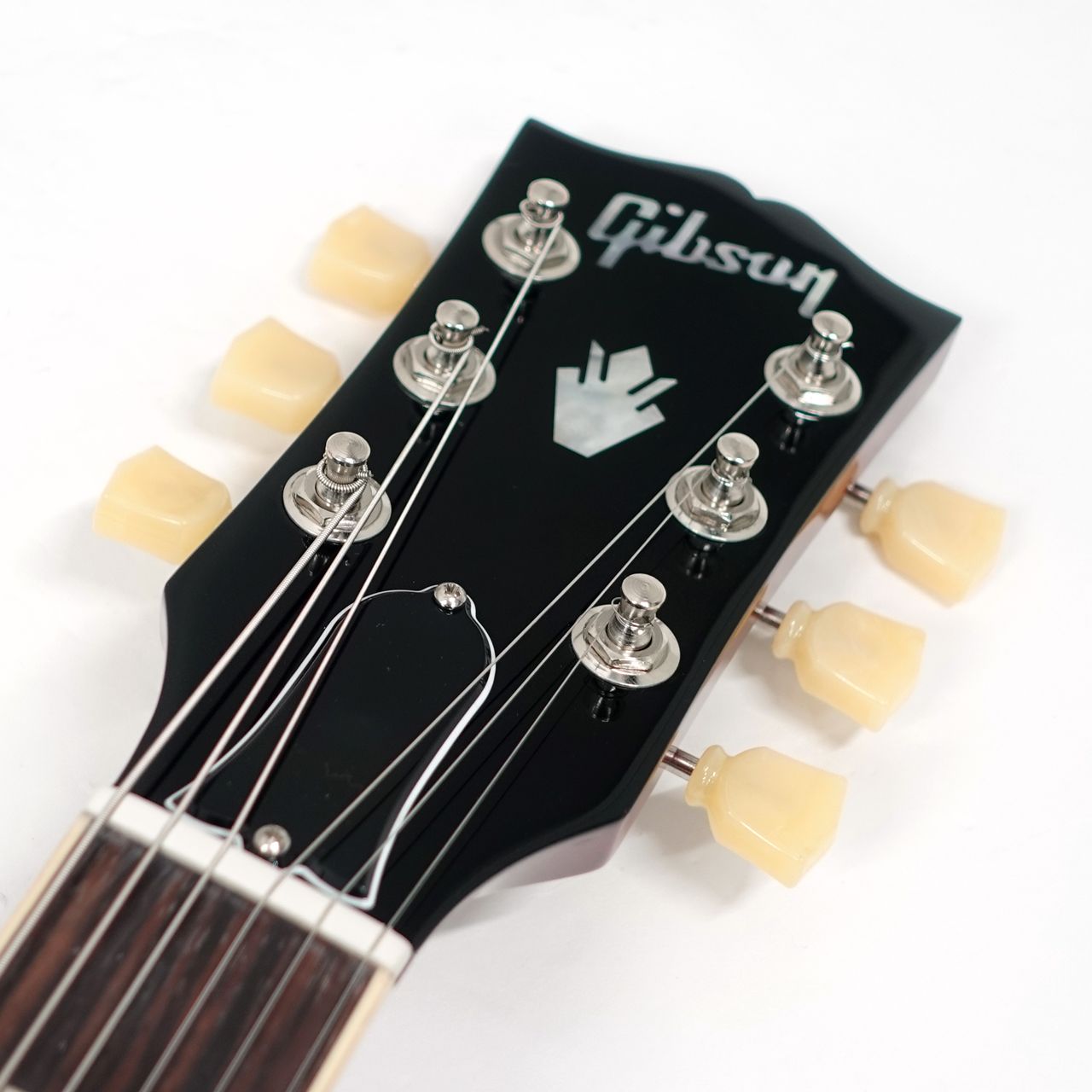 音質に定評のあるトーンに見事なフィギュアードメイプルトップ。ギブソンの美しいグロスニトロセルロースラッカー塗装はツヤが美しく深い色合いを出しています。