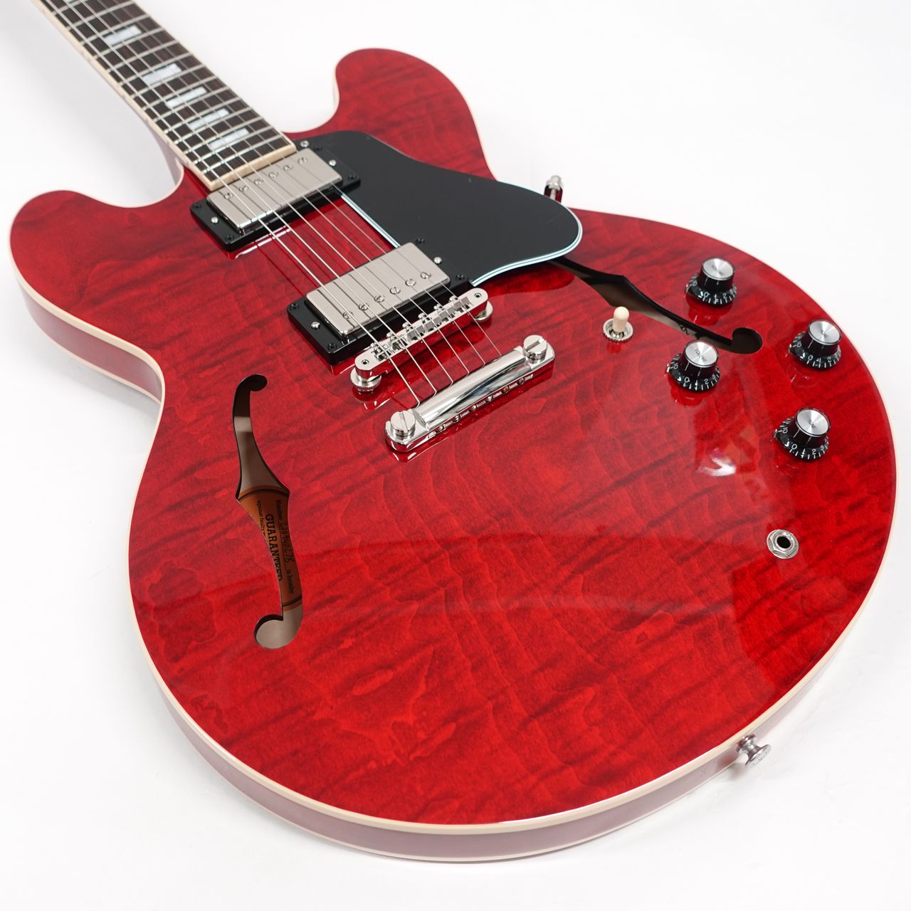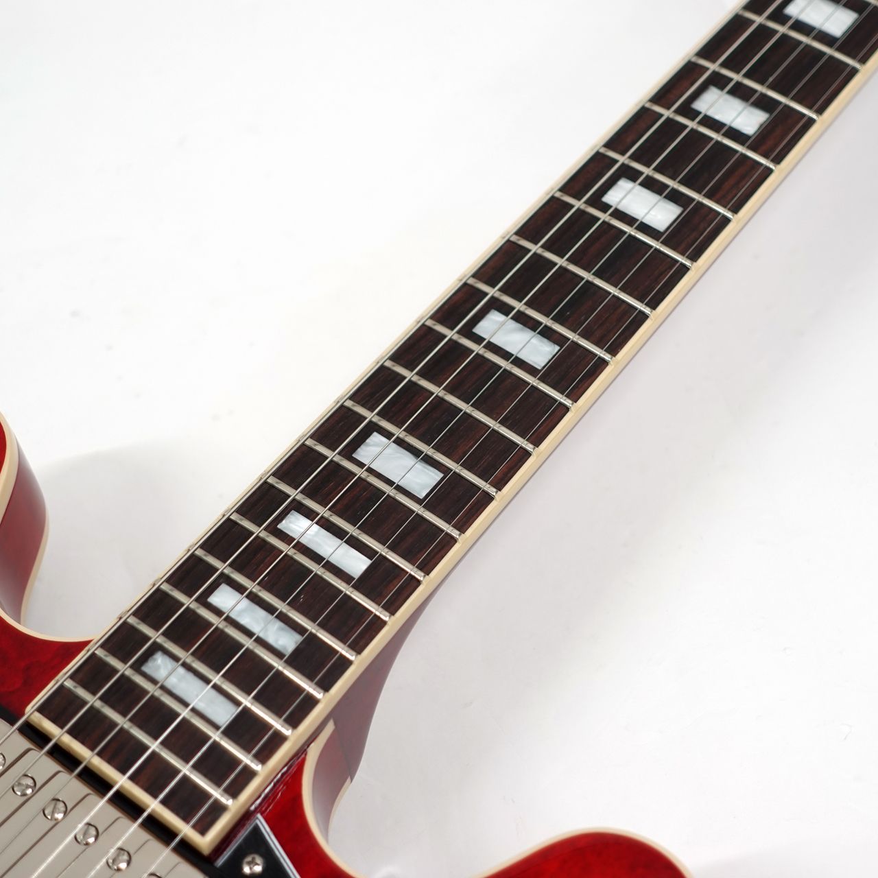 艶のある粘りと素直に伸びるサスティーン。ギブソンセミアコの魅力を堪能できます。メイプル・センターブロック、クオーターソーン・アディロンダック・スプルース・ブレーシングを擁し、美しさと艶のある倍音、キャリブレート処理されたT-Typeハムバッキング・ピックアップを搭載し、王道の335サウンドを出力します。