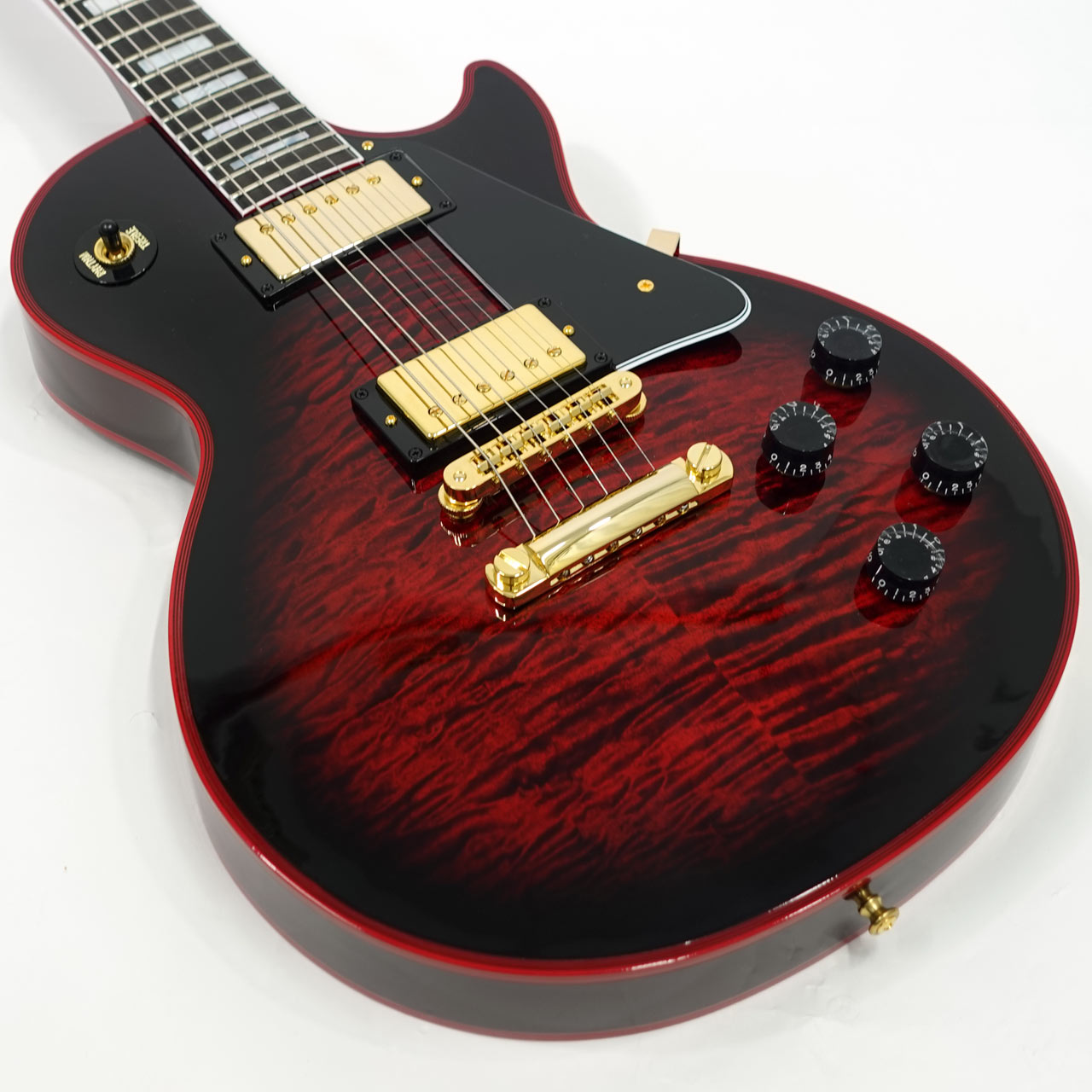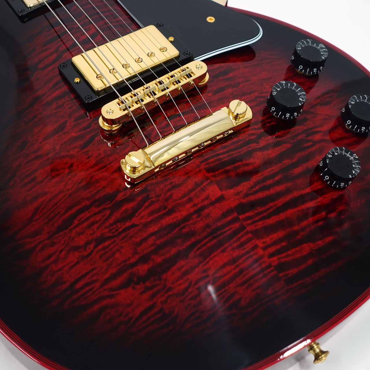 美しいフレイムメイプルトップに妖艶なレッドウィドウカラー、ゴールドパーツに身を包んだ豪華なルックスはブラックビューティとは別の気品を感じる1台です。カラーに合わせたバインディング、ヘッドロゴ&インレイも印象的です。