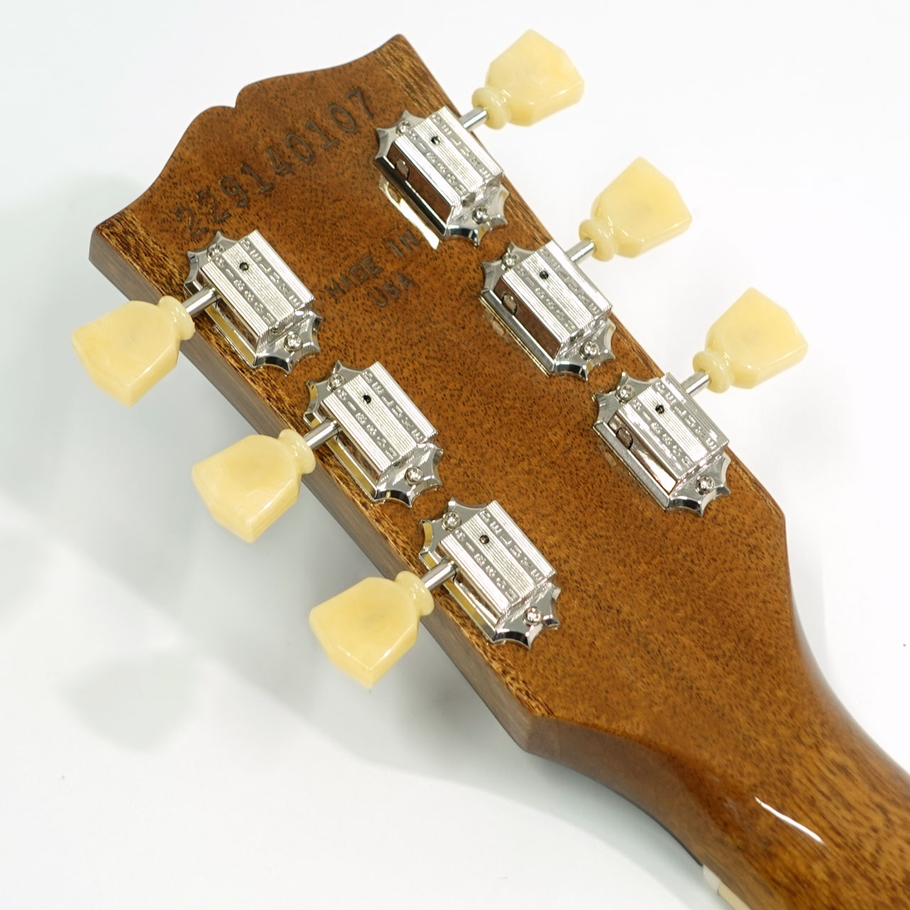オーソドックスなメイプルトップのスタイルにギブソンの美しいグロスニトロセルロースラッカー塗装はツヤが美しく深い色合いを出しています。