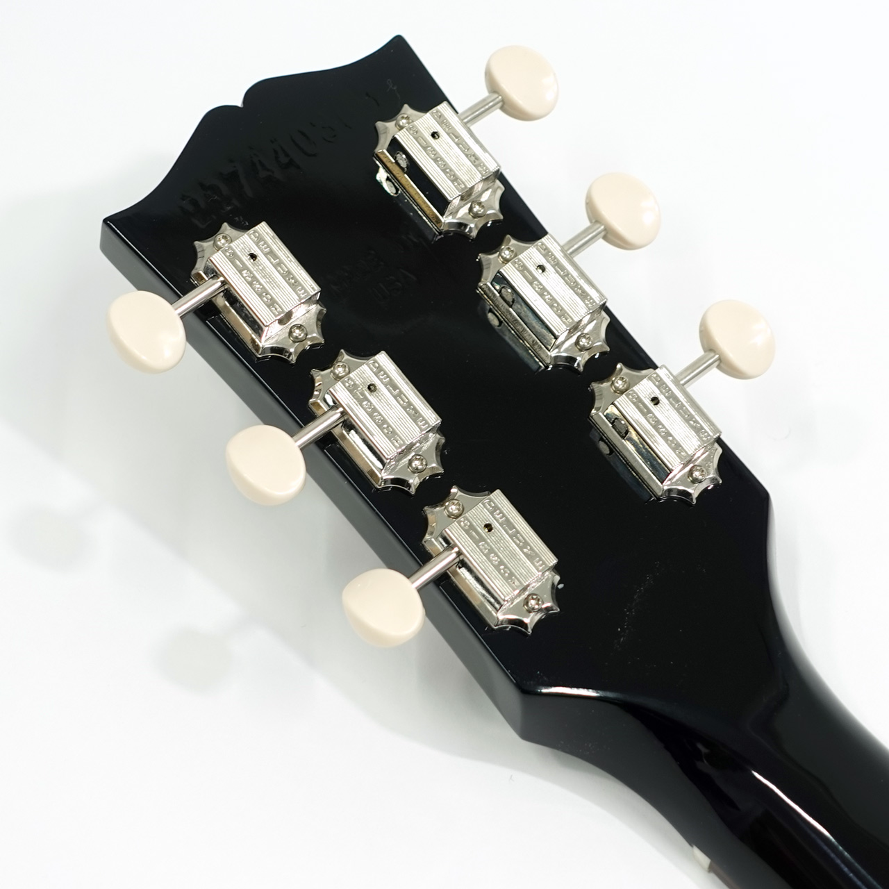 スモールピックガードにホワイトボタンペグ、ラップアラウンドのバーブリッジにスクリプトロゴと往年の仕様で拘りの一本です。