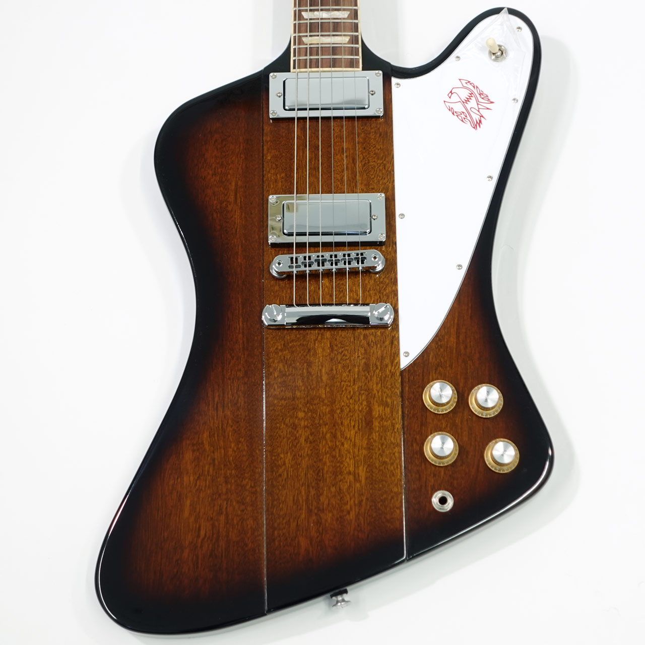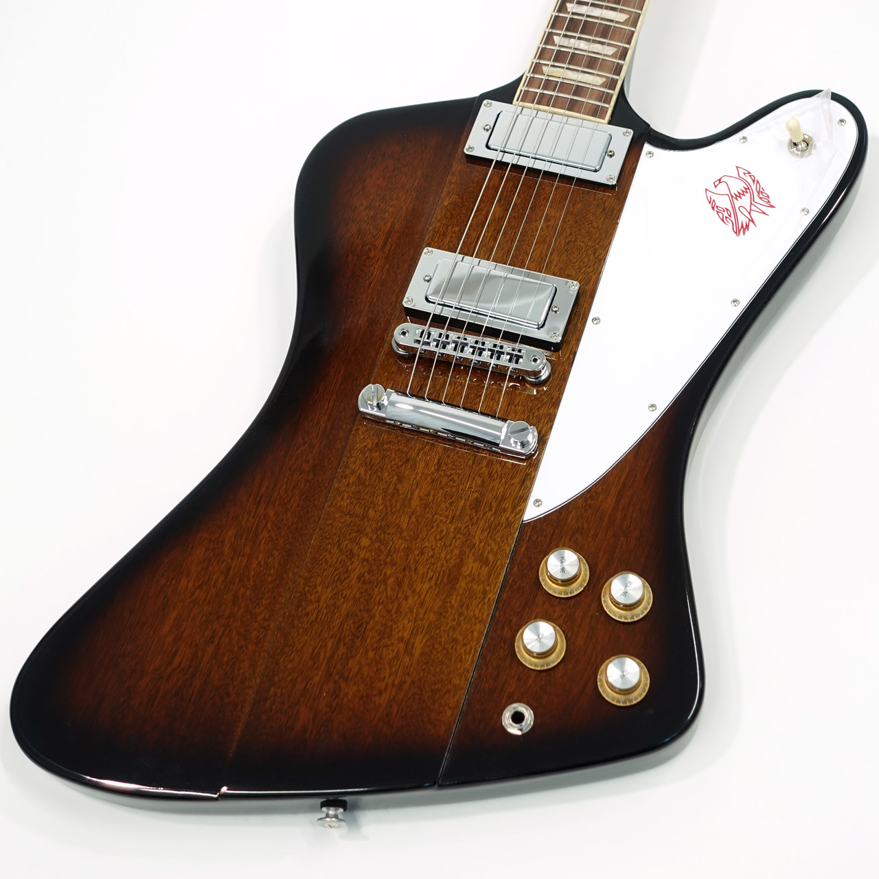 ピックガードにはおなじみのファイアーバード(火の鳥)のグラフィクスがホット・スタンピング(箔押し)により刻印されています。