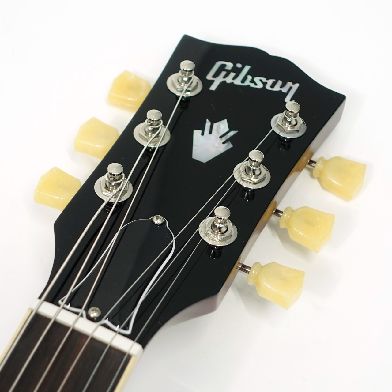 音質に定評のあるトーンに見事なフィギュアードメイプルトップ。ギブソンの美しいグロスニトロセルロースラッカー塗装はツヤが美しく深い色合いを出しています。