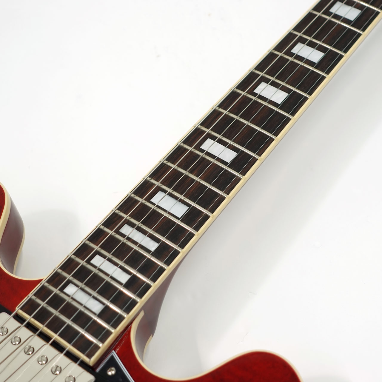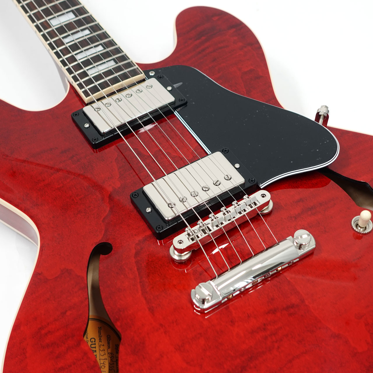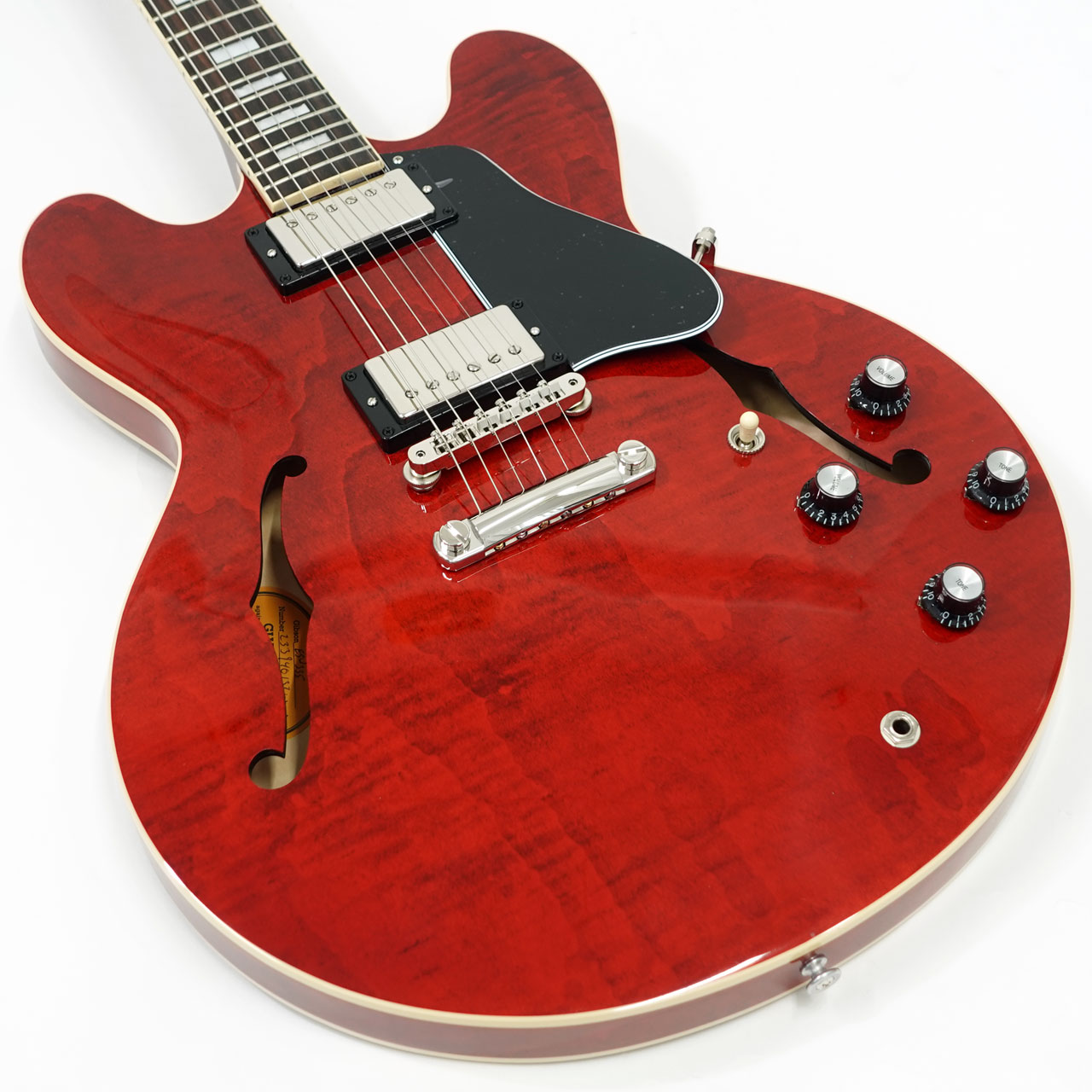 艶のある粘りと素直に伸びるサスティーン。ギブソンセミアコの魅力を堪能できます。メイプル・センターブロック、クオーターソーン・アディロンダック・スプルース・ブレーシングを擁し、美しさと艶のある倍音、キャリブレート処理されたT-Typeハムバッキング・ピックアップを搭載し、王道の335サウンドを出力します。