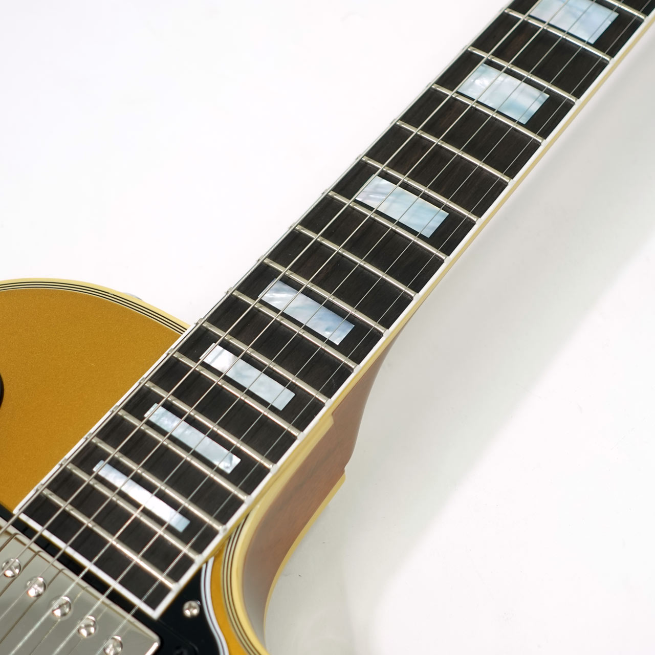 ディープ・ネック・ジョイントを採用しており、これまでの68年以降の再生産スペックに準じるショートテノンに比べて弦振動がダイレクトに伝わるビンテージ仕様。オリジナルと再生産スペックの良いとこどりをしたような魅力的なレスポール・カスタムです。
