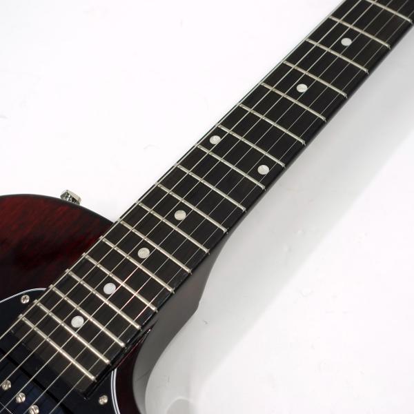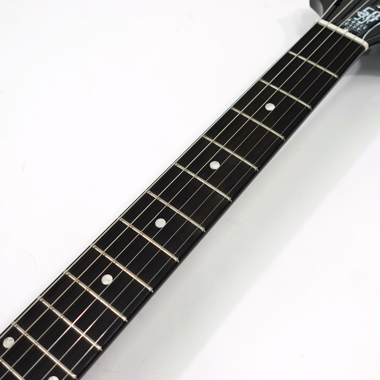 軽量化されたソリッド・ポプラ・ボディに、メイプルのネックはSlimTaperプロファイルを採用。22フレットの指板はストライプド・エボニー製で、アクリル・ドット・インレイが施されています。