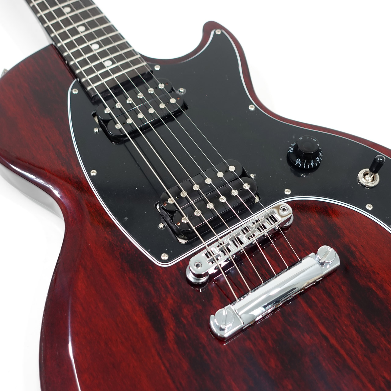 ハードウェアはすべてクローム仕上げで、Nashville Tune-O-Matic ブリッジ、アルミ製ストップバー・テイルピース、Grover Mini Rotomatic チューナー、そしてアウトプット・ジャック・プレート・カバーが装備されています。