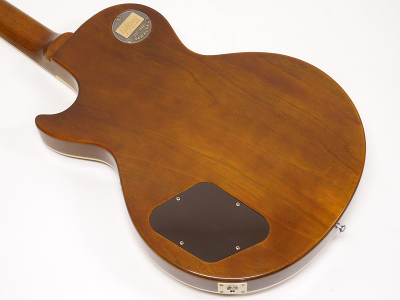 メイプルトップ、ボディにはワンピースのマホガニーが採用されています。ヴィンテージトーンの再現というコンセプトのもと、ワイアリング、ワイアーのマテリアルにもこだわり開発されたバーストバッカーを搭載、ヴィンテージの雰囲気あふれるセルロースインレイ、トーンにこだわり採用されたハイドグルー接着でのネックのディープジョイント、ボディの振動に大きく影響を及ぼすロングスタッド&インサート、新たにリファインされた味わいのあるVOS仕様のゴールドトップなど様々なこだわりが見え隠れする一台に仕上がっております。