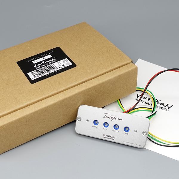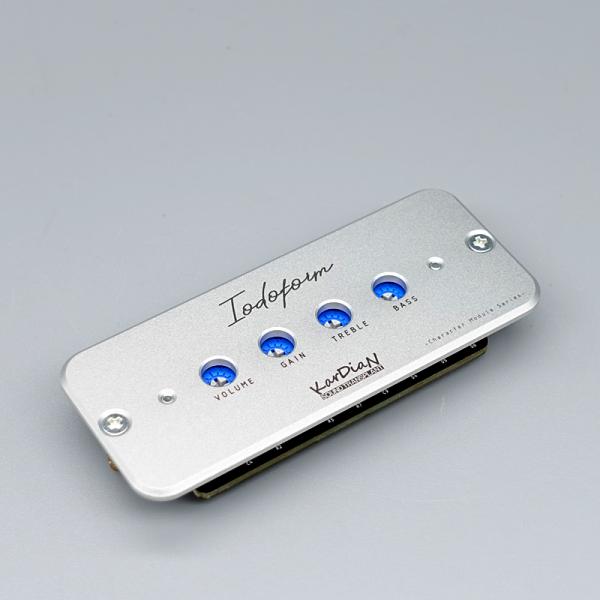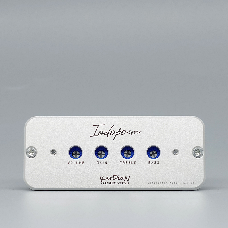 "Iodoform / ヨードホルム"はオンボードプリアンプとは異なります。プリアンプとして音の増幅、味付けをおこなうのではなく、ギター本来のサウンドやトーンをキャラクターレベルでアクティブに変化させるという視点から開発がスタートしました。オンボードプリアンプとは違いベースやトレブルの2EQ、ゲインレベルを予めセッティングし演奏中のオンオフのみでエフェクティブなサウンドを作り出すことが可能です。例えばブルース、ジャズマンのような、ギターとアンプだけでサウンドを奏でる人には、以前の機材環境を保った状態でエフェクティブなサウンドが簡単に手に入るでしょう。またプリアンプとしてかけっぱなしで使うことももちろん可能です。ハードロックなサウンドが好みのプレイヤーであれば、強力な2EQによってギターをイコライジングし、アクティブ回路によって作られるローインピーダンス信号によってノイズレスなサウンドを生み出すことも可能です。