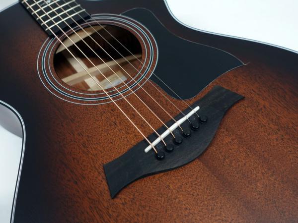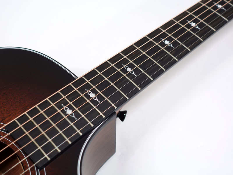 グランドオーディトリアムと呼ばれる314ceと比べて一回り小さく、ボディも薄めで抱えやすいです。スケールも短くなっておりますので、弦を押さえた際のテンション感も優しく、演奏性も向上しておりますので、お体の小さな方や女性の方などにも無理なく良い音を出していただけます。