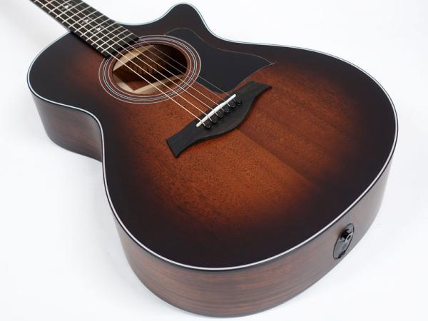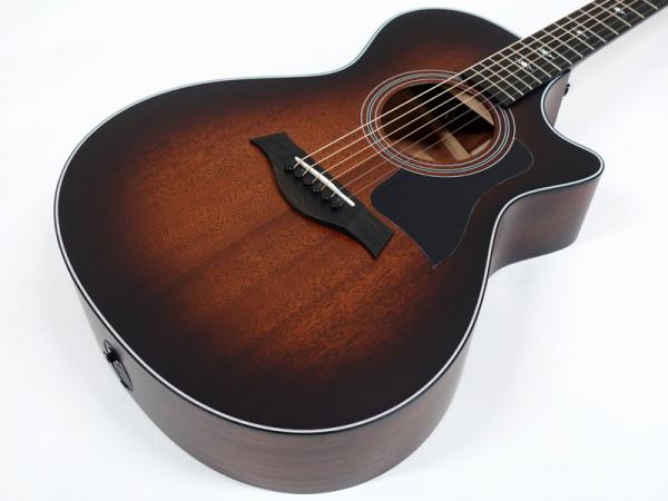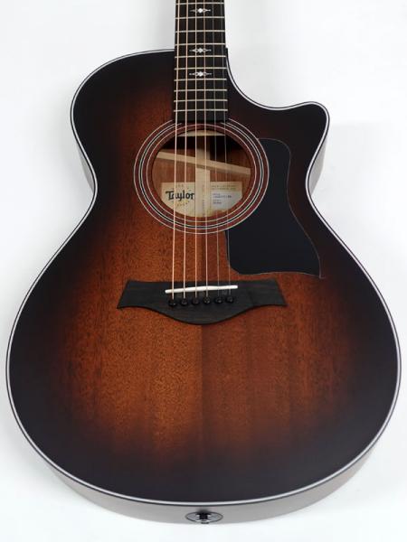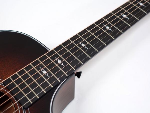 こちらは小振りなボディに短めのスケールで抱えやすく弾きやすい322ceにテイラーの新しい”ソニックエンジン” V-Classブレーシングを採用した322ce V-Class。V-Classブレーシング構造により高音域の音にさらに力強さが加わり音量とサステインも向上した内容となっております。