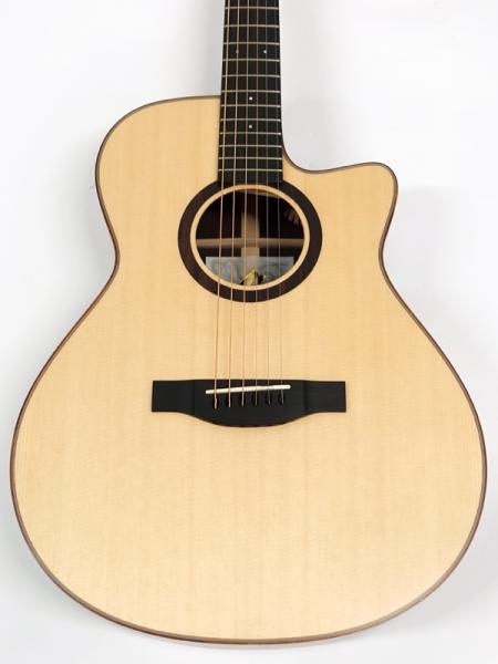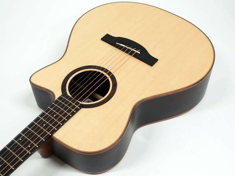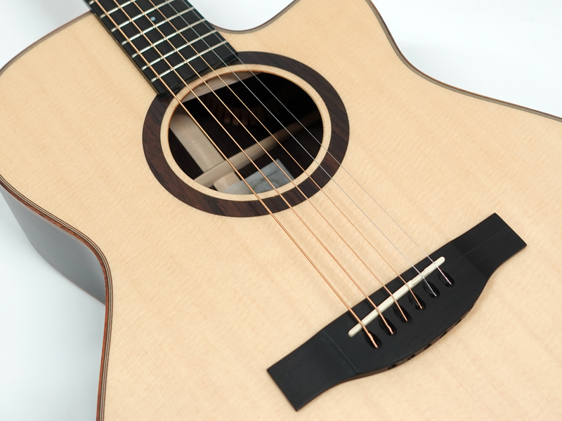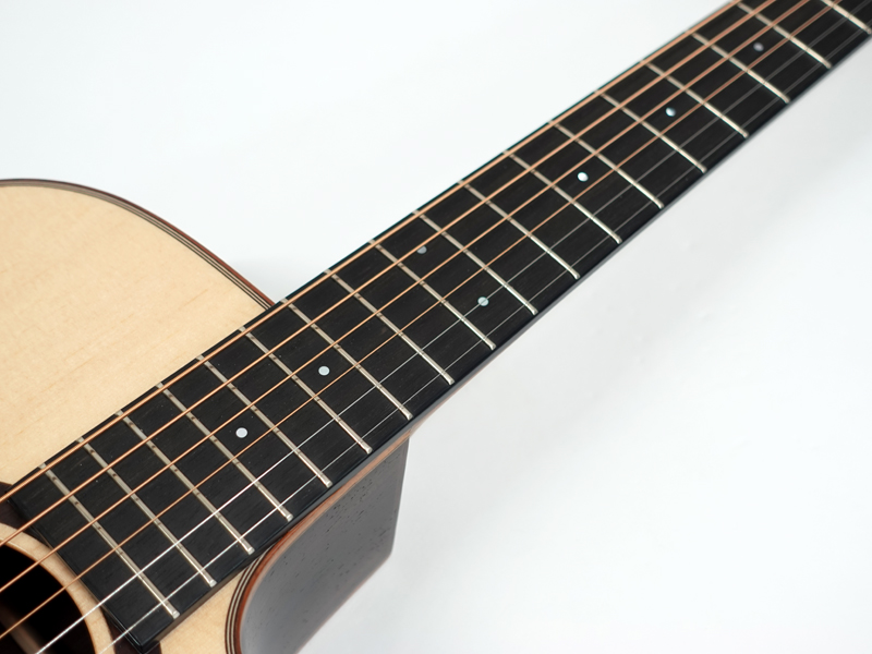 シトカスプルース単板トップ、インディアンローズウッド単板サイド&バック、エボニー指板&ブリッジ。