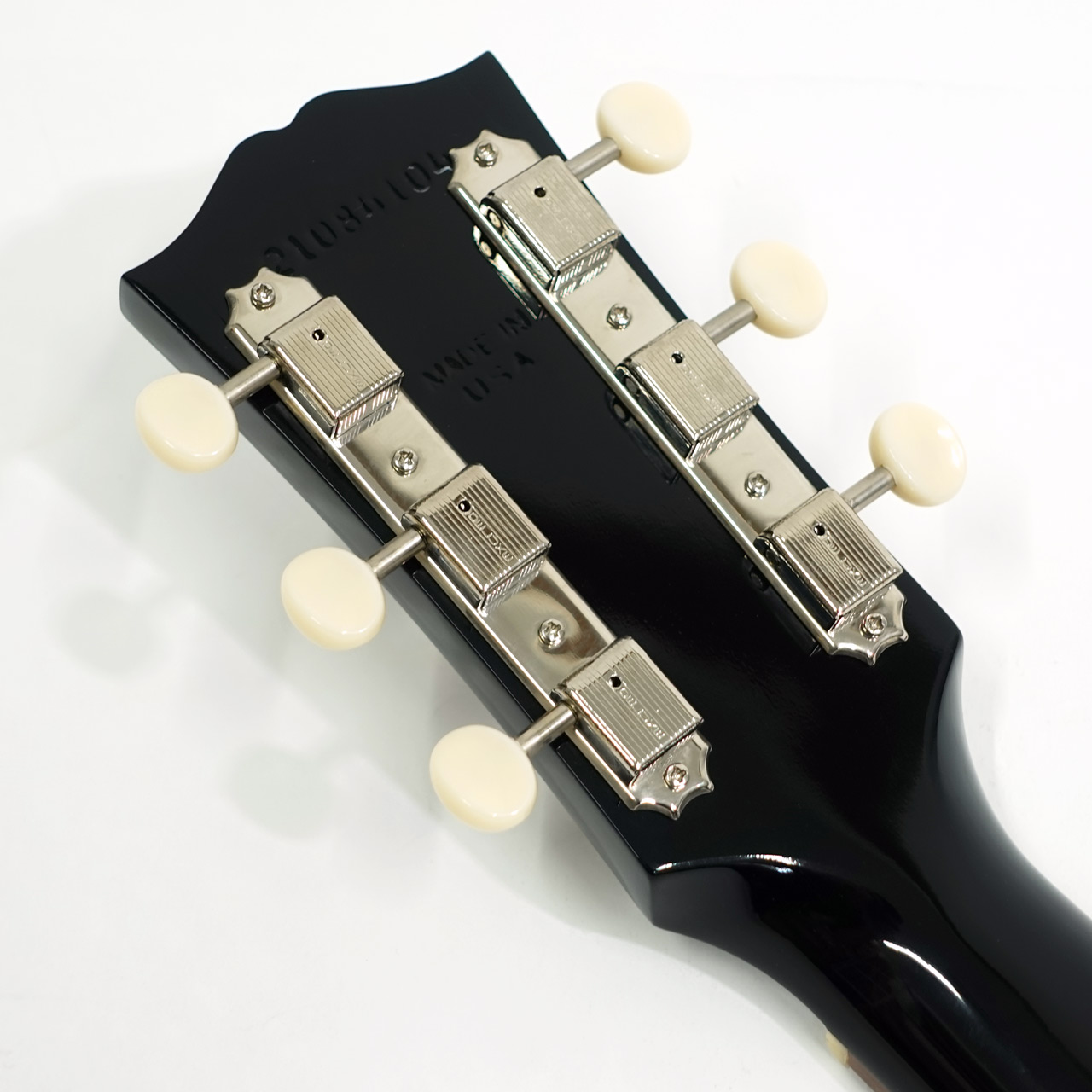 トップ材はシトカスプルースにサイド&バック材はマホガニー、マホガニー材ネック(ラウンドネック)、牛骨ナット&サドル、60年代スタイルのラージホワイトピックガード(ネジ止め無し)、Grover 3連ペグ(クリームボタン)チューナー、アジャスタブルサドル&アッパーベリーブリッジと60年代J45の最も人気のあるルックスに仕上がっております。