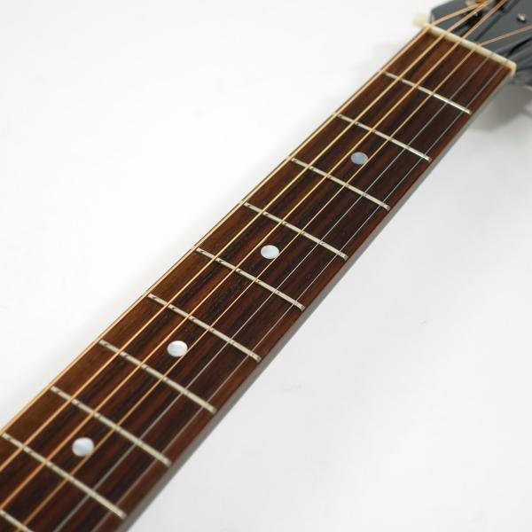 ラウンドネックにスキャロップドブレーシング、ボーンサドルのモデルとは弦を少し弾いただけで明確に違いがあり、軽いピッキングでもアジャスタブルブリッジのジャリっとした粒立ちの良いコード感が飛び出し、ピックを深く食い込ませるほどに音量が大きくなる排気量の高さが非常に気持ち良いです。