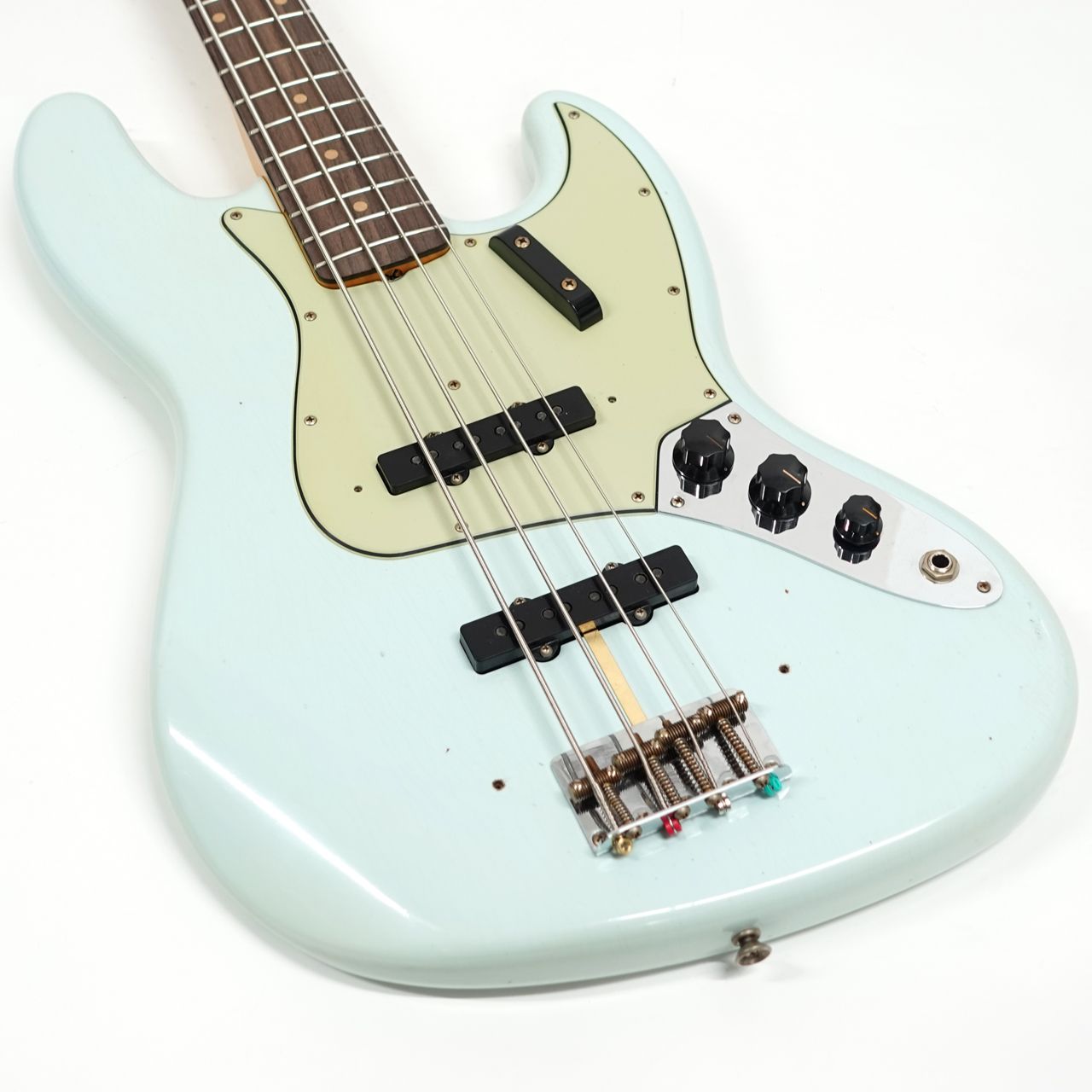 本モデルはアルダーボディ、ローズ指板という現代まで続く王道スペックを持つ1963年のジャズベースに敬意を払い製作されたカスタムショップ製のジャズベースです。エイジドのソニックブルーカラーが映える一本に仕上がっています。