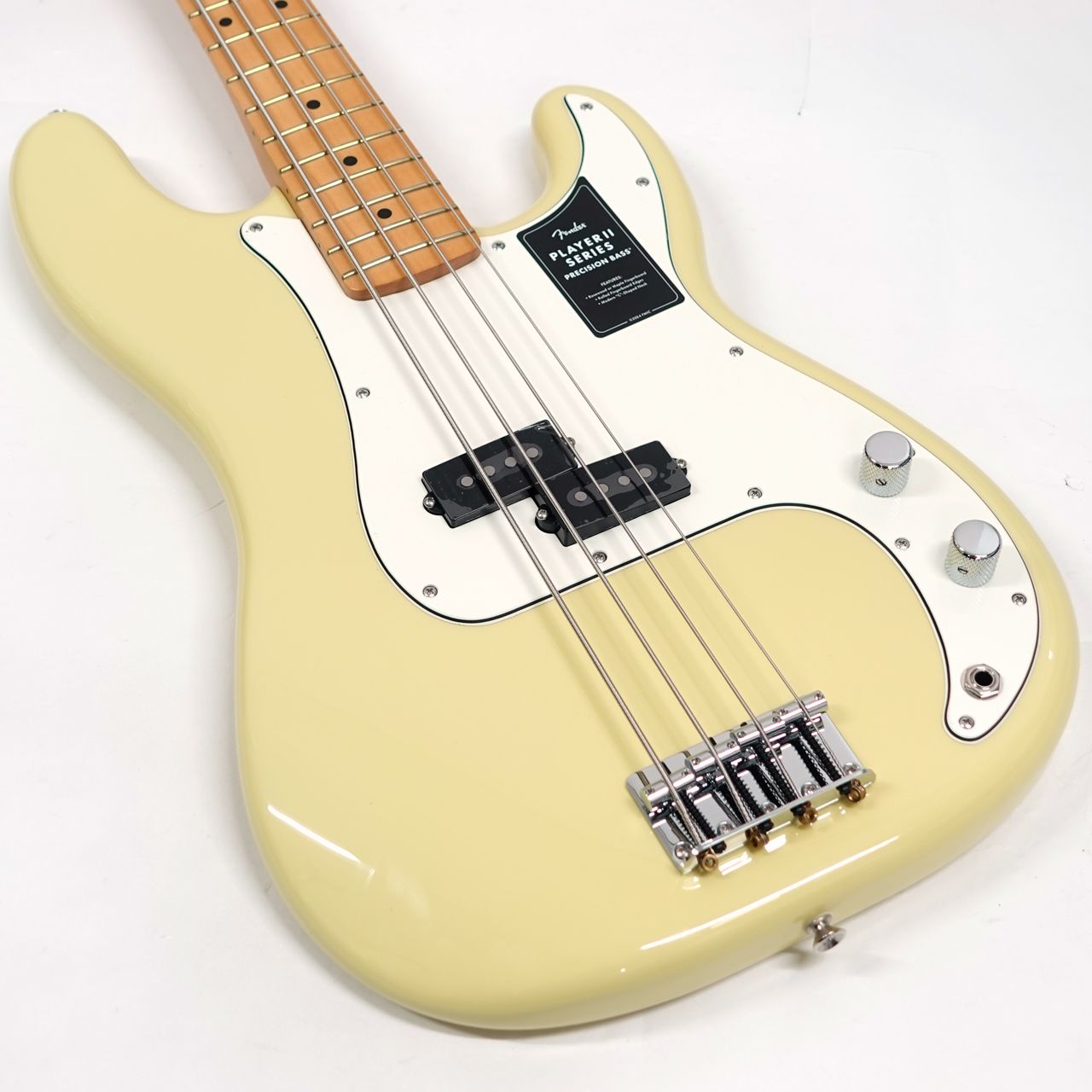 クラシックなトーンウッドであるアルダーボディを採用したPlayer II Precision Bass は、伝統的なフェンダーフィニッシュを採用。Player Series Alnico V Split-Coil P bassピックアップからは丸味のあるハイエンド、うねるようなミッドレンジ、そして迫力のあるローエンドが得られます。シングルグルーヴ付き4スチールサドル式ブリッジ、オープンギアチューニングマシンによりチューニングの安定性が確保され、無限のサウンドの可能性を追求できる柔軟性を備えています。