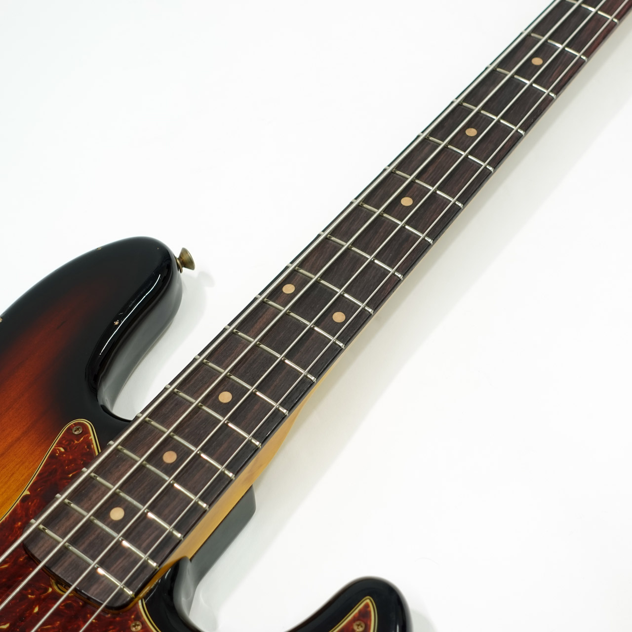 本モデルは1960年代初頭のスタックノブ、スラブローズ指板、3トーンサンバースト仕様を持ちながらカスタムスペックの2ピースアッシュボディを採用。1961年のジャズベースに敬意を払い製作されたカスタムショップ製のジャズベースです。